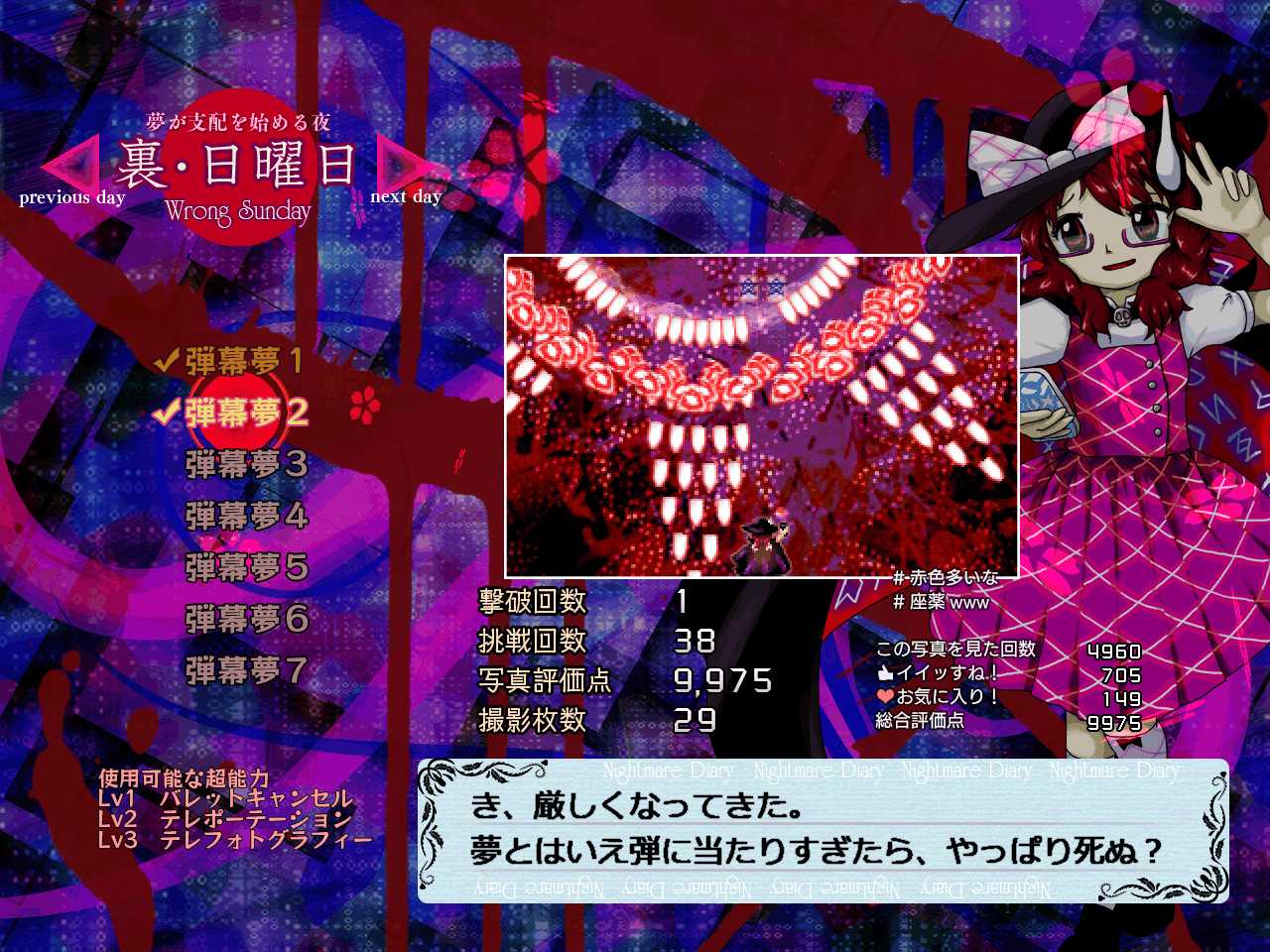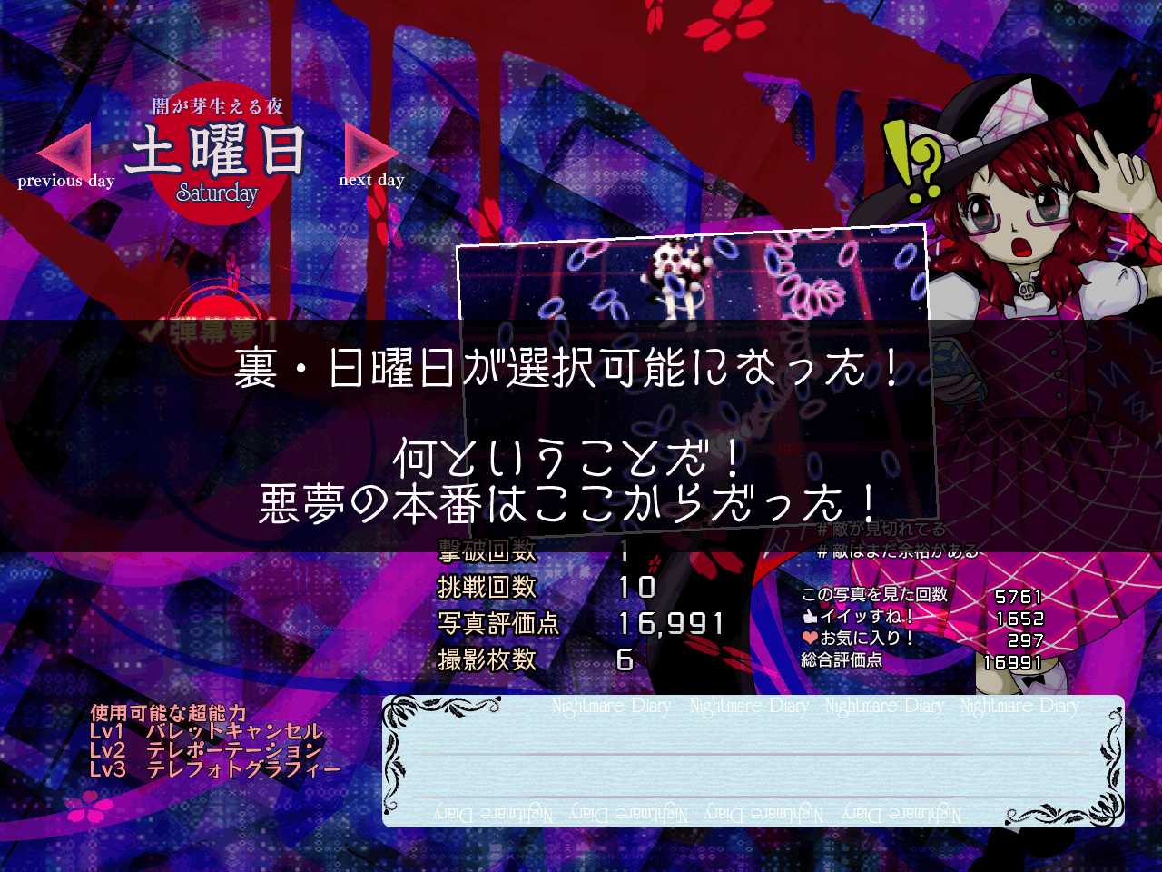それぞれの曜日にあとから弾幕夢が追加されるのかとも思ったのですがそうではなく、土曜の次は裏・日曜日が出現しました!