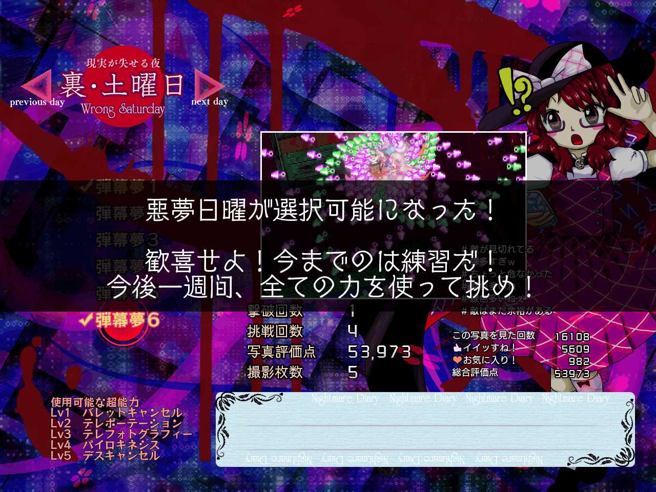 まさかという感じで意外な人物との会話イベントが発生しますが、これをクリアすると隠岐奈から終わらない悪夢を打ち破るための力を与えられます