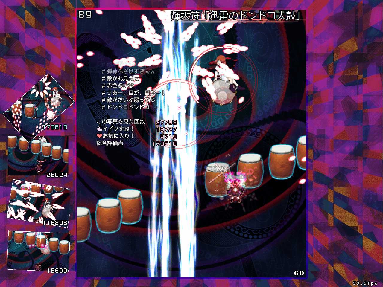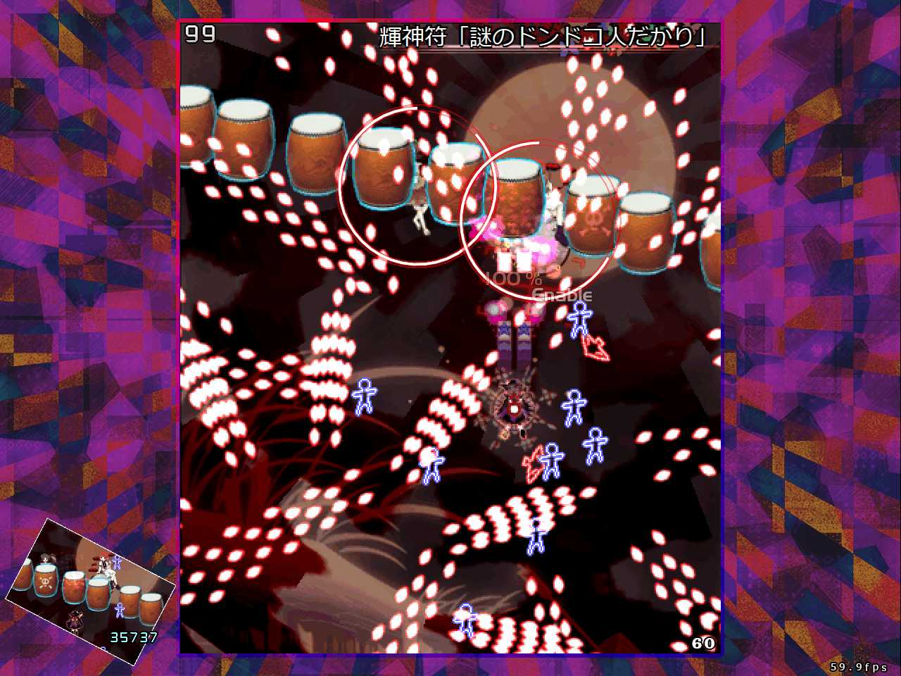 雷鼓の太鼓は破壊すると炸裂、マミゾウの棒人間は自機を緩くホーミングするためどちらも長く画面上に居座り続ける