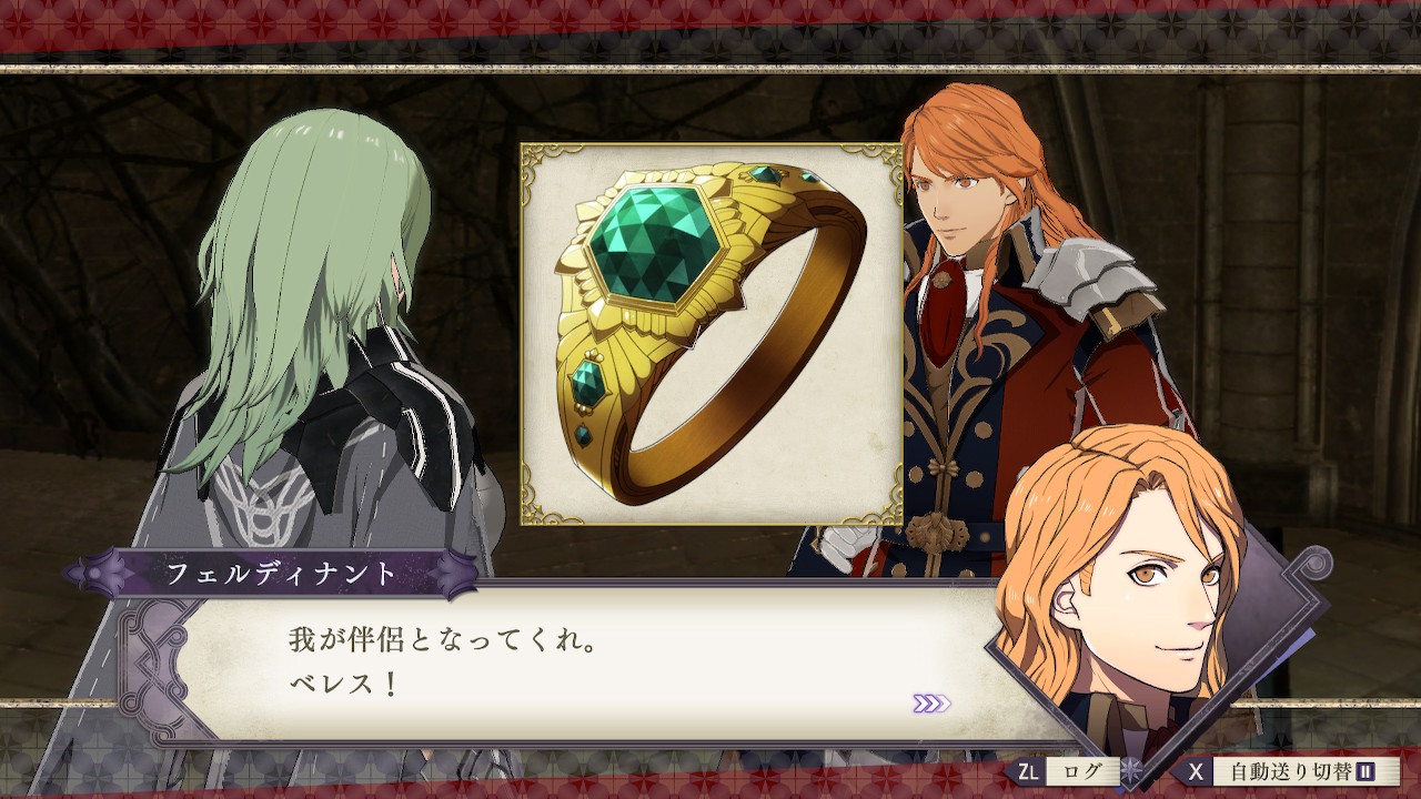 フェルディナントは女性主人公にしてから初めての異性の相手でしたが、主人公の持っている指輪は出てこず男性の方からプロポーズされました