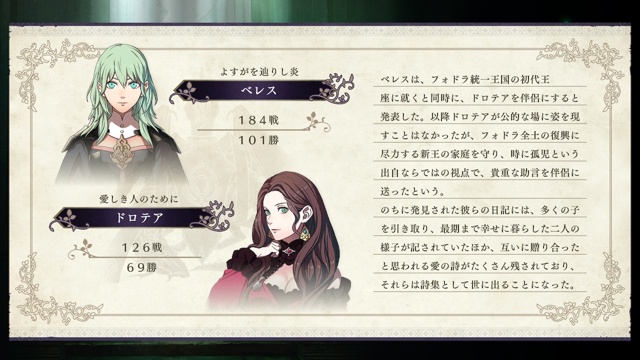 今回の周回によって回収できたのはフェルディナント、ドロテアの支援Sイベントでした