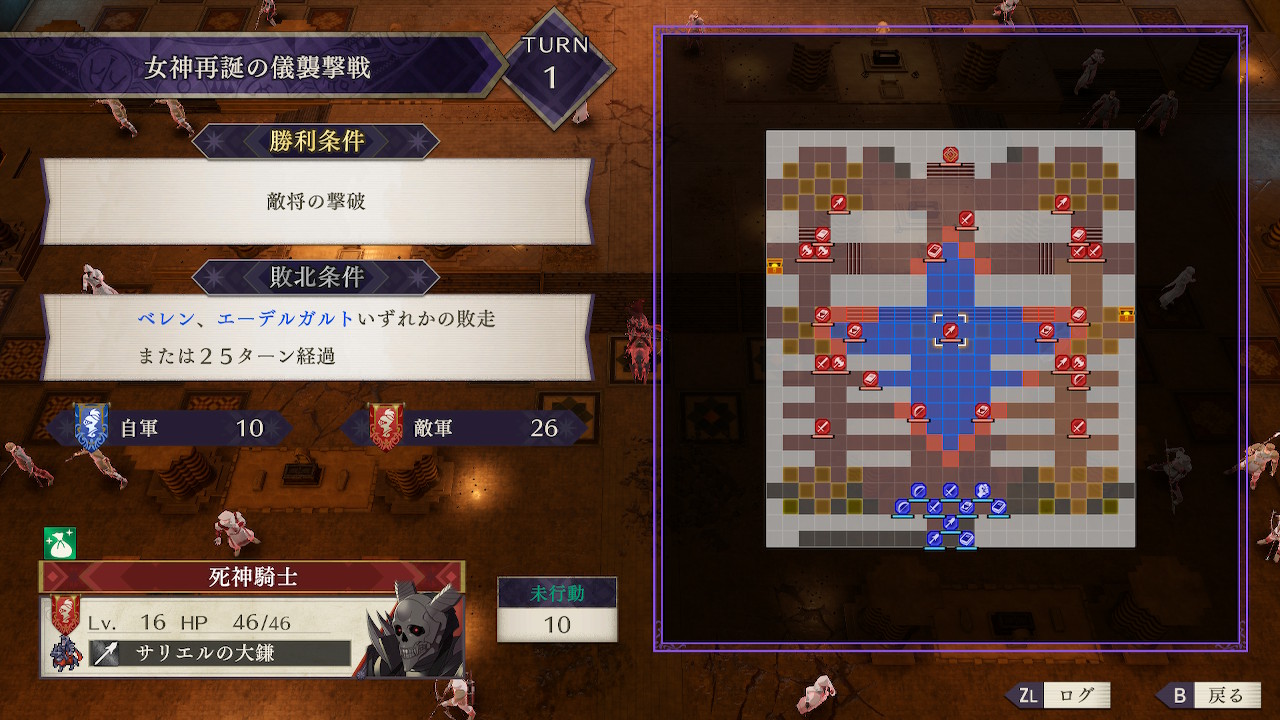 ターン制限があるマップとはいえ、ノーマルと同じ25ターン以内でかなり猶予があるし、増援の数もノーマルと変わらなかったので敵を釣り出しながら少しずつ進めば時間に余裕をもってクリアできた