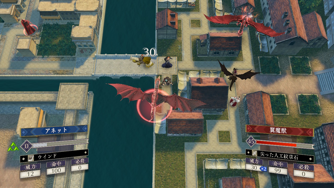 サンダーストームを使わせずに飛行系でヒューベルトを奇襲しようにも、ペトラの外伝時に出現した時と違い今回は初期装備がアグネアの矢なので耐魔の低いユニットで突っ込んでも返り討ちに遭う