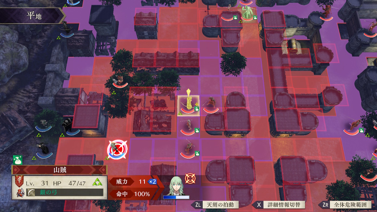 このマップに出現する敵ユニットの武器種は剣、弓、拳のみなのだが、実は剣とそれ以外とで行動パターンが大別されている