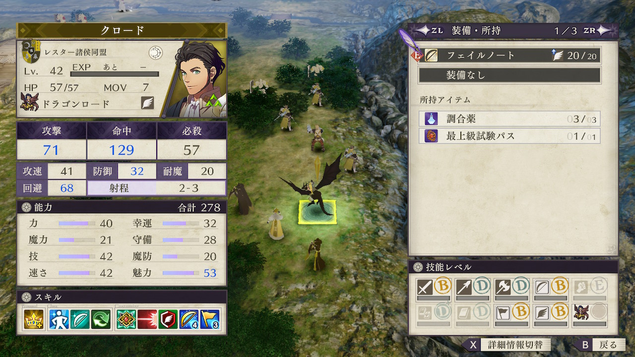 それ以外にも、クロードはエーデルガルトより防御やHPが低いのでバトルマスターのドゥドゥーなら格闘で一発KOできたりするし、射程4マスならそもそも反撃されないのでボウナイトの弓やトゥルソスの魔法で一方的に攻撃できる