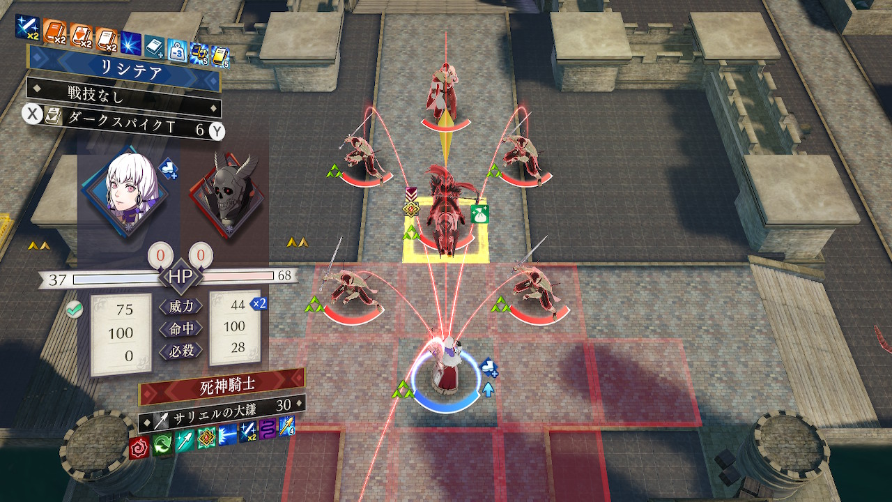 リシテアとリンハルト、ローレンツに神速の備えをかけ、リシテア移動後にローレンツで再行動させた後、リンハルトでワープさせれば死神騎士まで余裕で到達できる