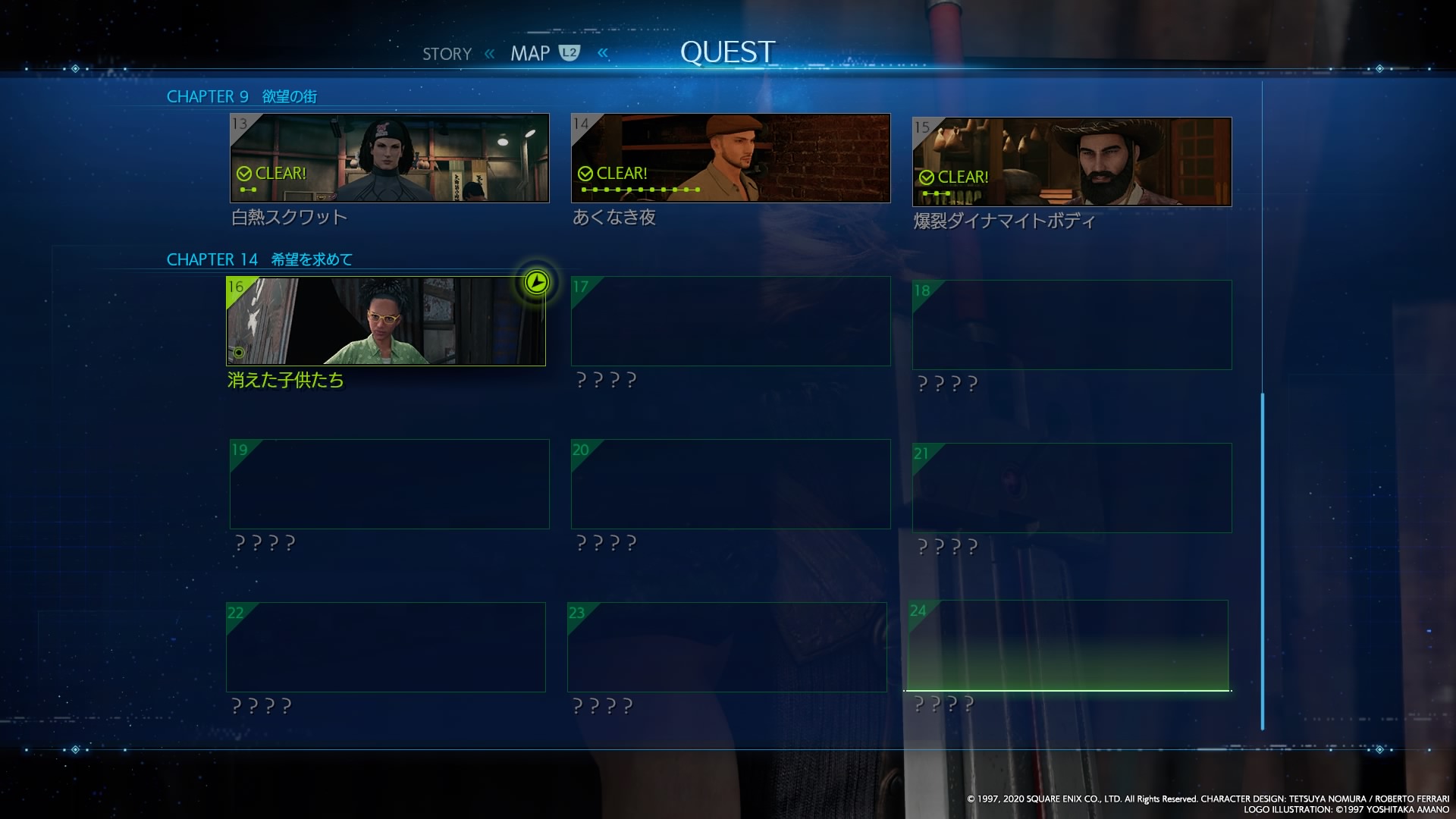とりあえずラスダン(仮)の神羅ビルに入るまでにクエストがたくさん発生しているようなので、これらを消化するのにしばらく時間がかかりそうです