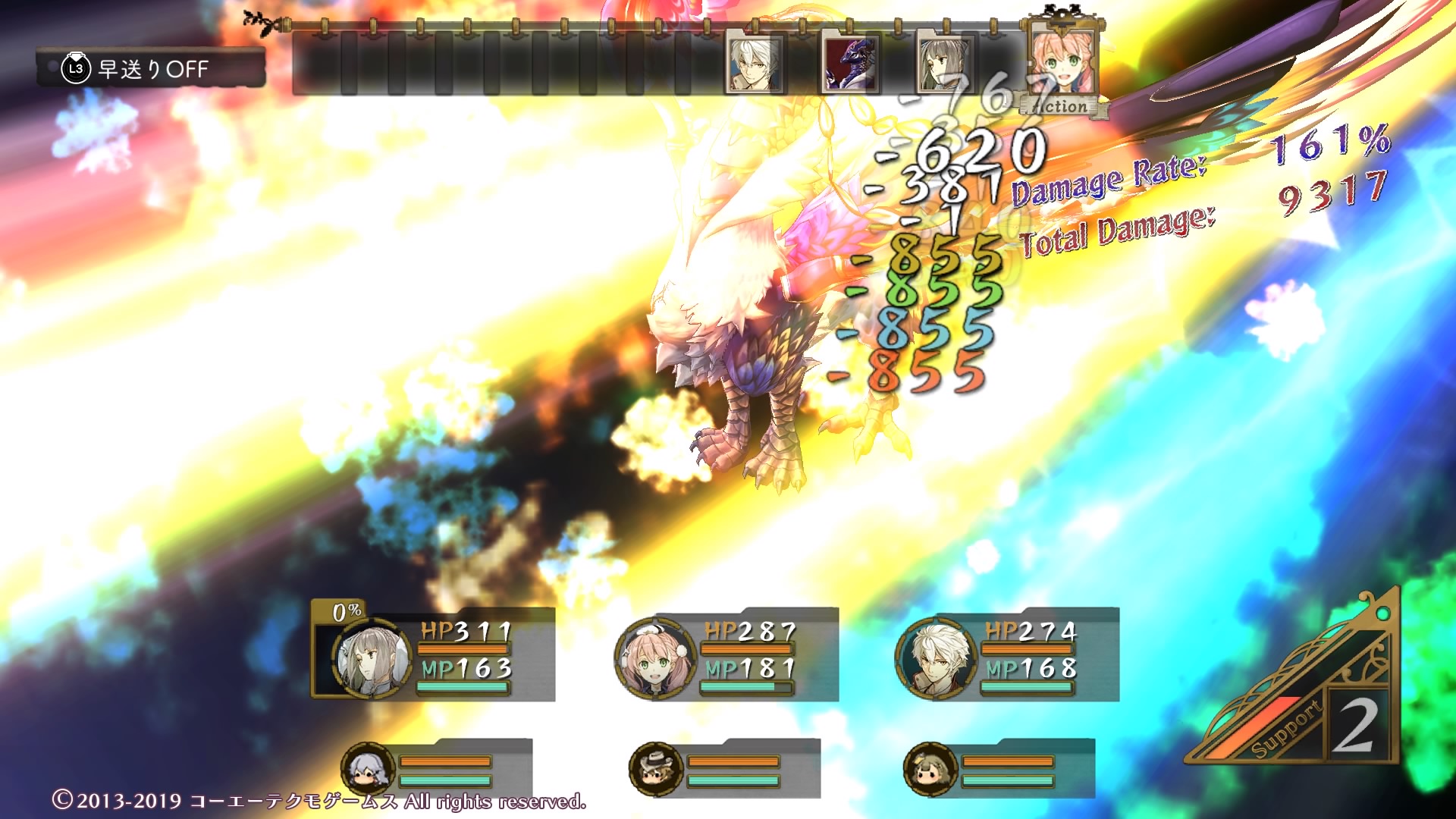 また、四極天の特性にダメージの変動幅が大きいというのがあるので、たまたま大きい値が引けたのかもしれません