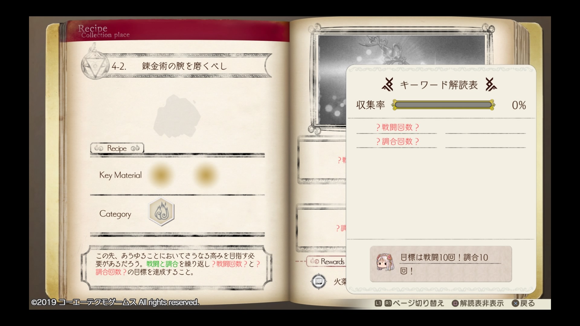 レッサードラコに挑む前の準備段階ではレシピのレパートリーが少なく、目標のLV15までに作成済みの道具を繰り返し調合して何とか上げたという状況だったんですが、取り逃してたリドルの解読をしていれば自然とLV上げができるバランスだったんですね