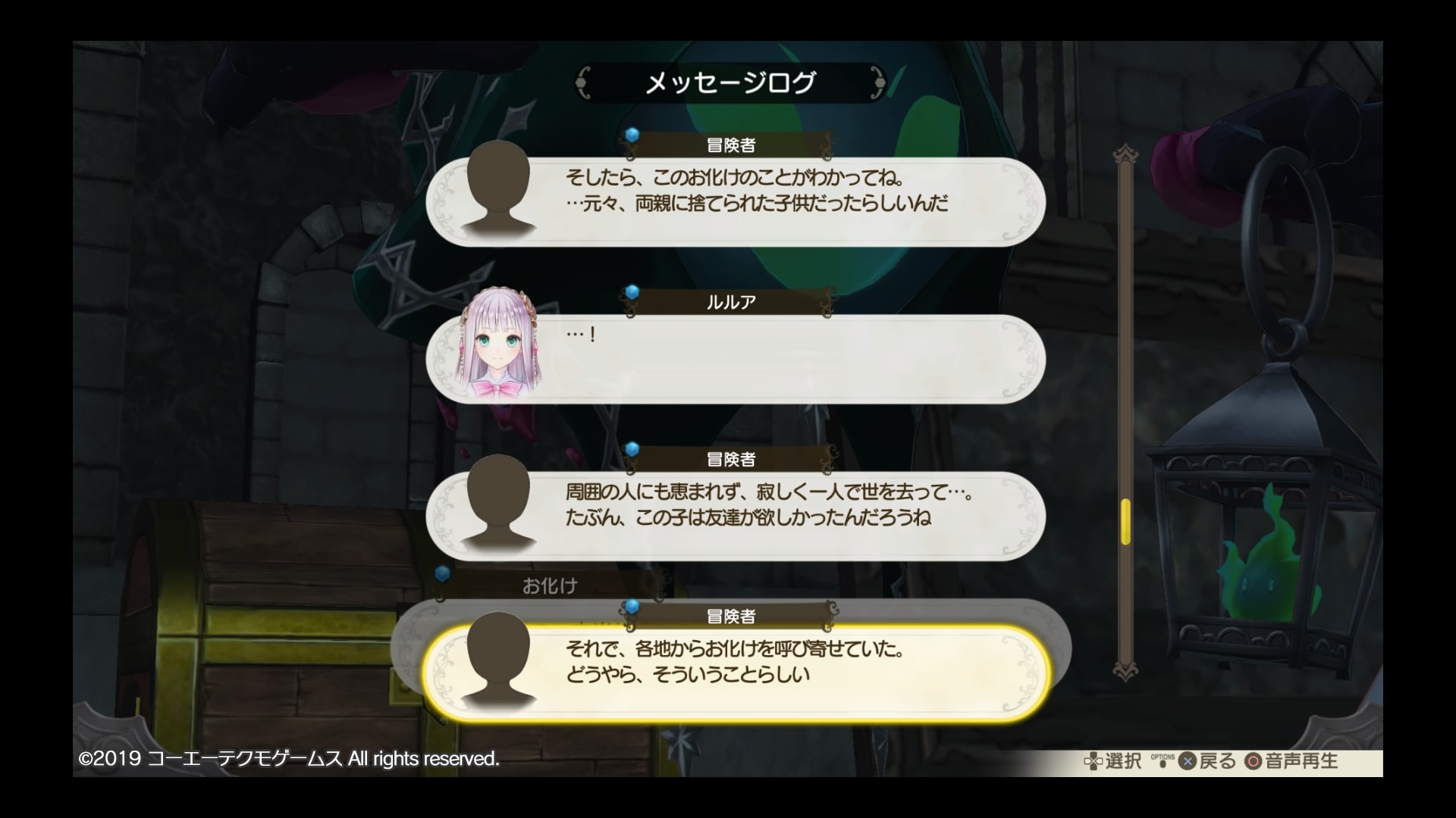 余談になりますが、ルルアはお化け退治の依頼の際、自分と同じ境遇のお化けを誤って退治してしまったことを激しく後悔し、「人生ってどうしてやり直しができないんだろう」と漏らします