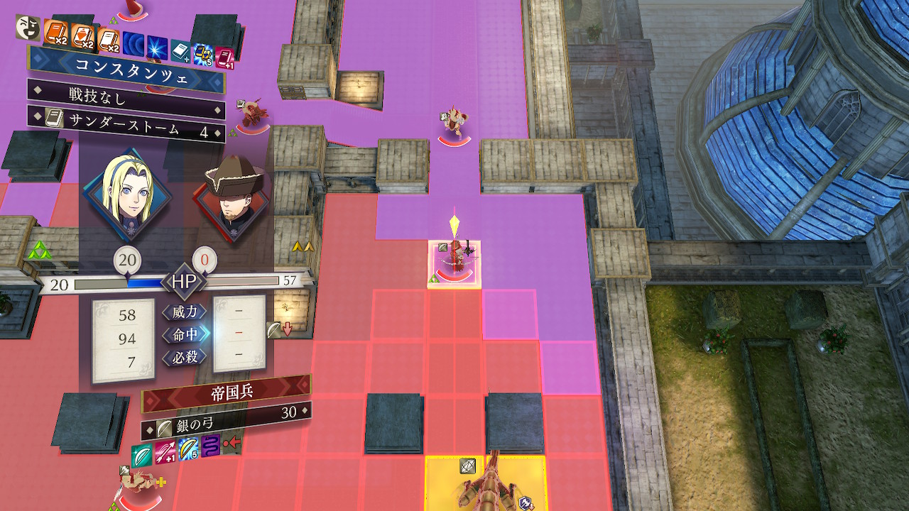 このマップは屋内のためコンスタンツェはスキル効果で火力が上がり、弓砲台のスナイパーをサンダーストームでワンパンすることが可能!