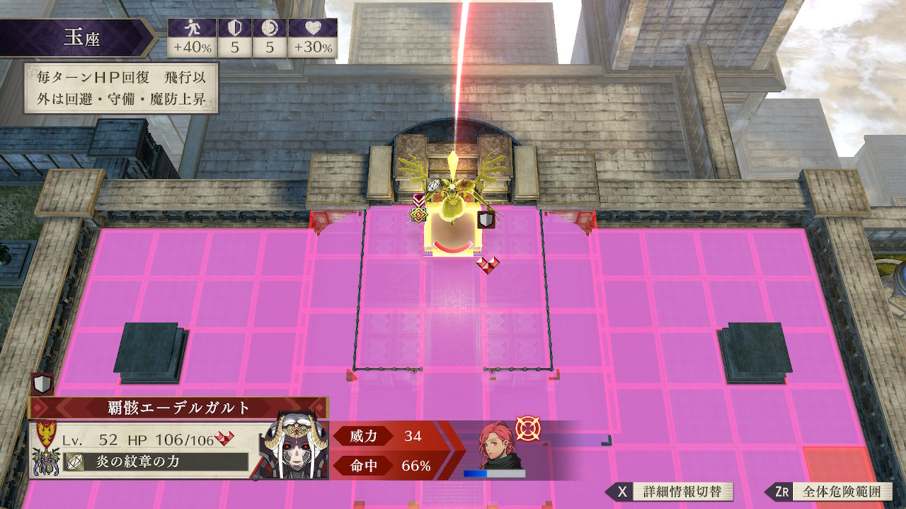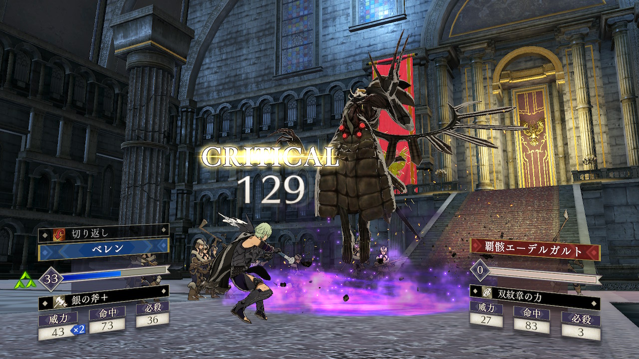 また、ある程度進軍すると(中央の階段から敵増援が予告されるタイミング?)ラスボスの行動ルーチンが変化し、ディミトリを優先して狙ってくるようになる