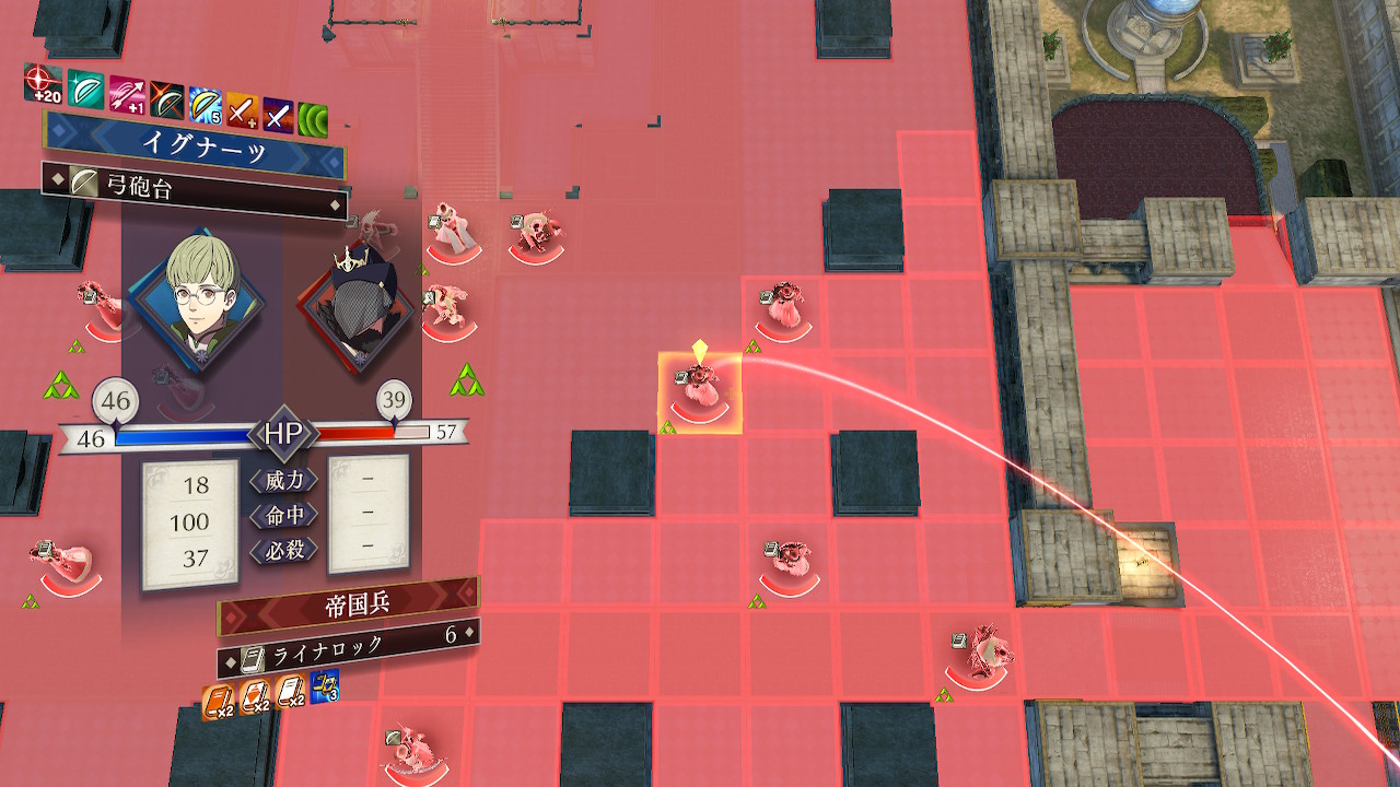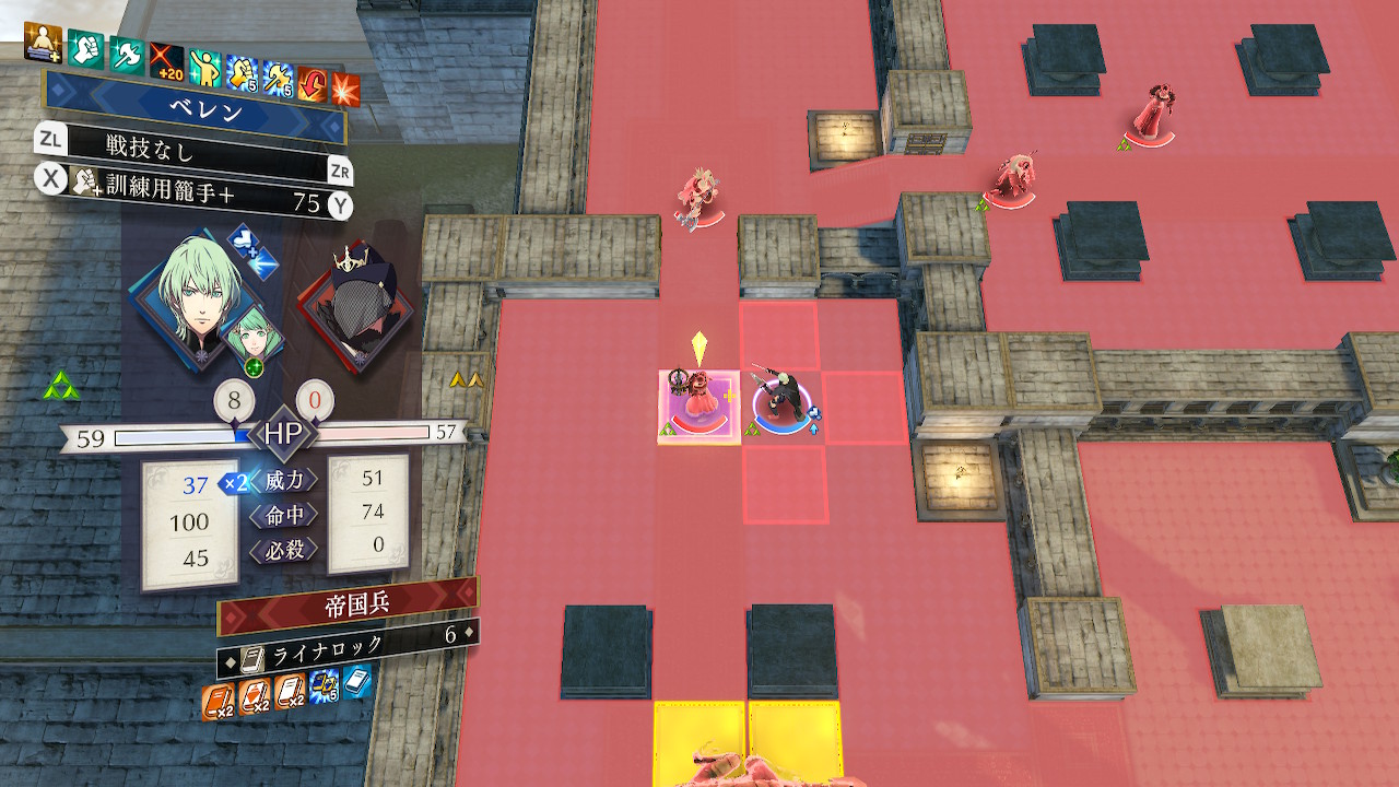 そこでアネットの応援と特別な踊りでバフをかけた主人公が籠手で攻撃し、次に回避が高く再移動もできるイングリットで間接攻撃し障壁を破壊