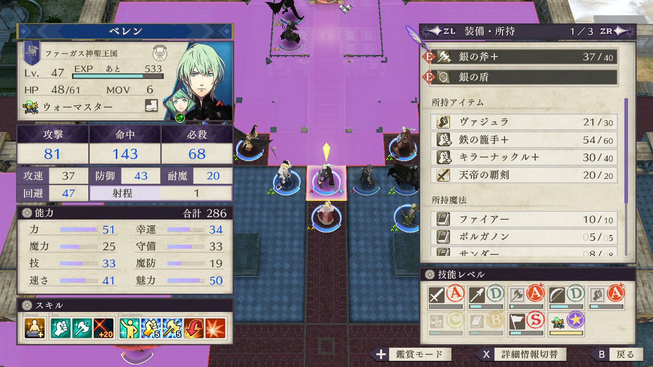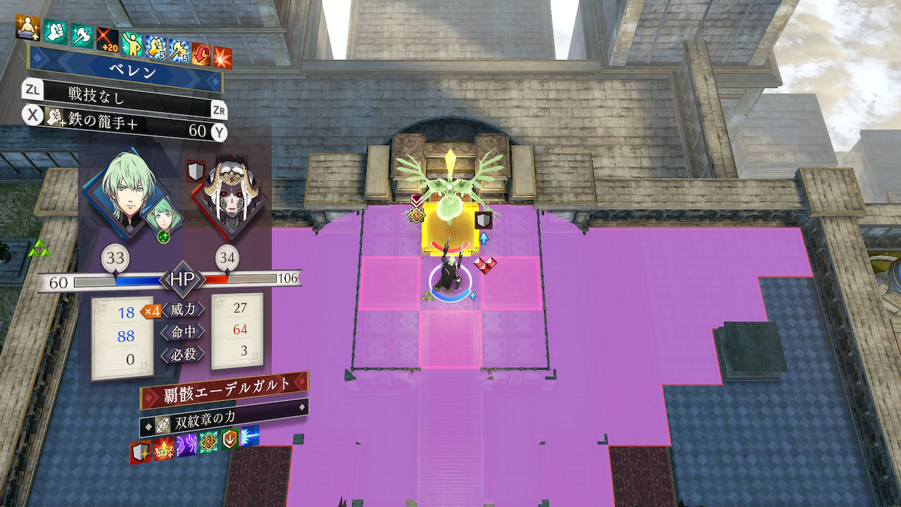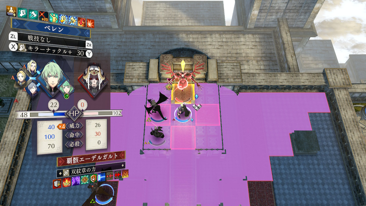 前回プレイ時は回避の覚醒で回避を上げまくったイングリットを突入させ近接攻撃で撃破したが、十分な魔防が確保できるなら応撃の備えの方が手っ取り早い