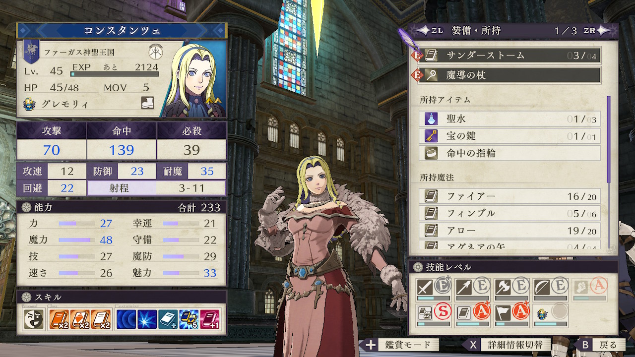 コ ンスタンツェは終盤までバトルシスターとして運用してましたが、最終盤では遠距離兵器が増えることからサンダーストームとレスキューの重要性が高まるほか、格闘での攻撃は敵からの反撃を考慮すると敵が強くなるほど使いにくくなるため、グレモリィに転身