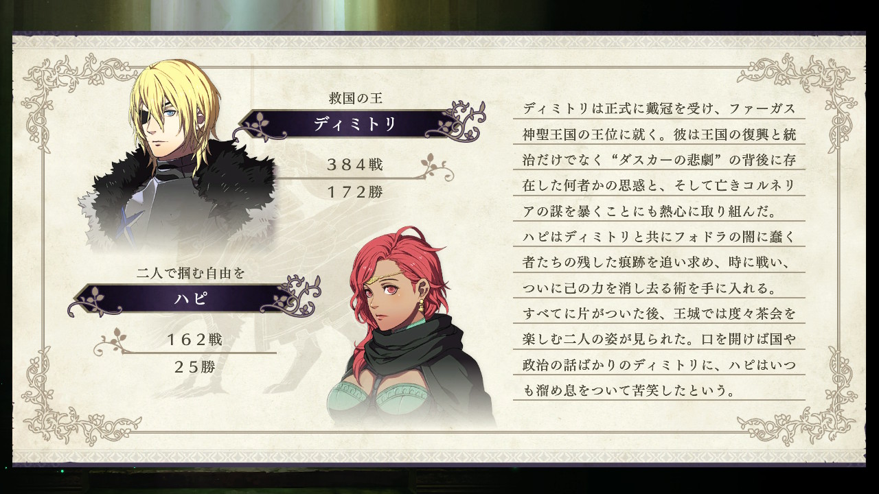 あ、でもDLCだから優遇されてるってわけでもないのか、ユーリスとバルタザールは割と普通だったし