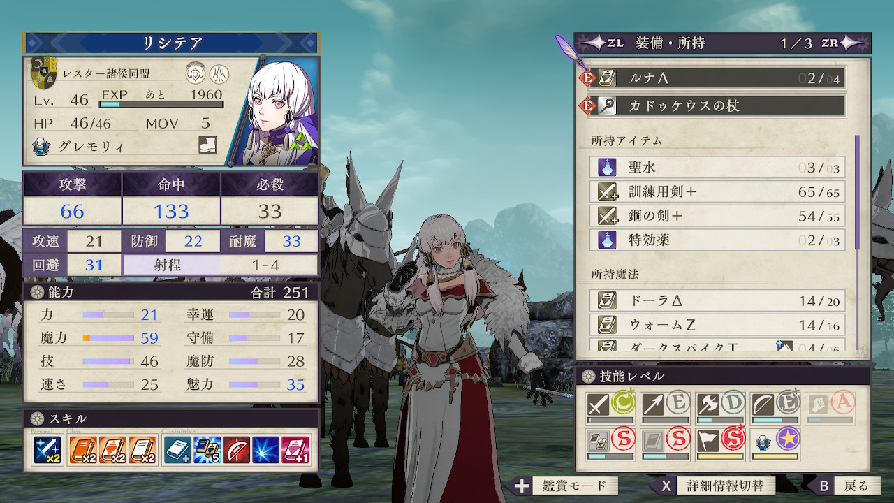 リシテアの低い成長率をバトルシスターの高い兵種ボーナスと成長補正で補ったことで主人公、クロードに次ぐ合計ステータスにまで成長