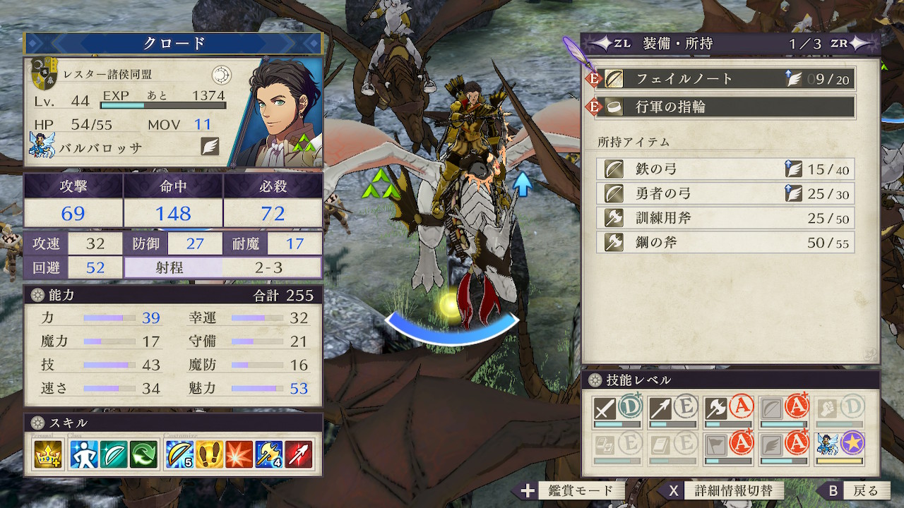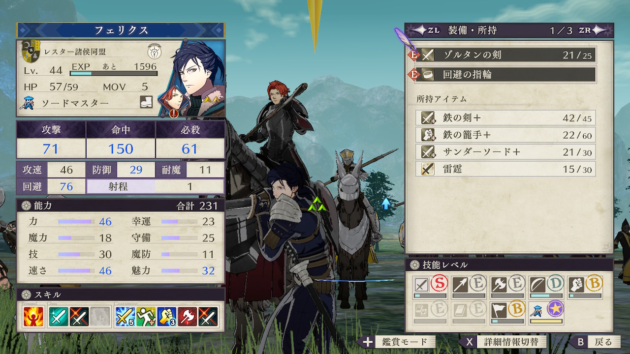 なお、フェリクスには主人公、クロード、ヒルダを隣接させ、さらにシルヴァンを副官にすることで与ダメが11上昇した状態にしてある