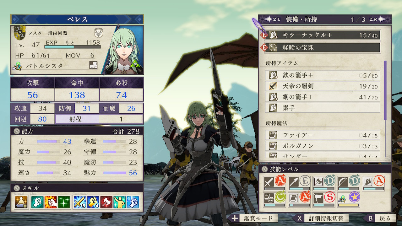 LVUPするタイミングではできるだけグレモリィになって成長補正を受けるようにしてたけど、それでも元々の成長率が低いのでLVが高くてもステータスは並という結果に