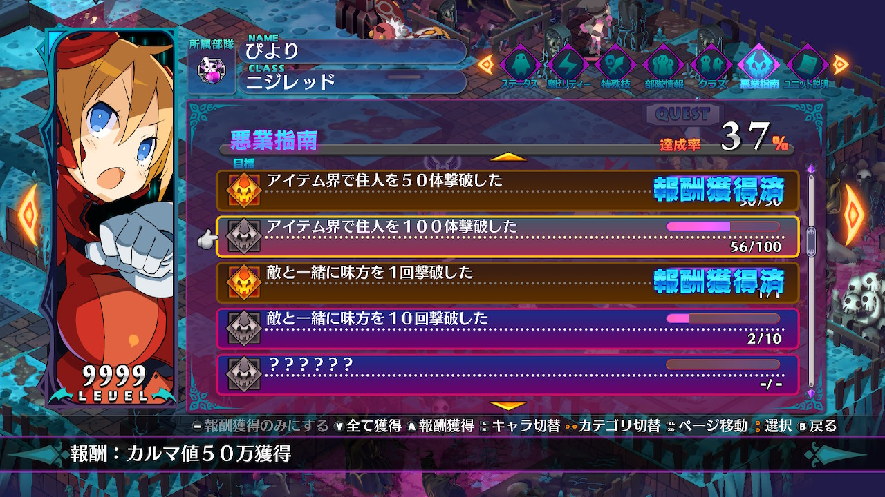 求められるカウント量は単純な撃破数のみで、低レベルのアイテム界を自動で回せば獲得カルマ値の多さに対して楽に達成できるので、超転生させる主力キャラはできれば全員達成しておきたい