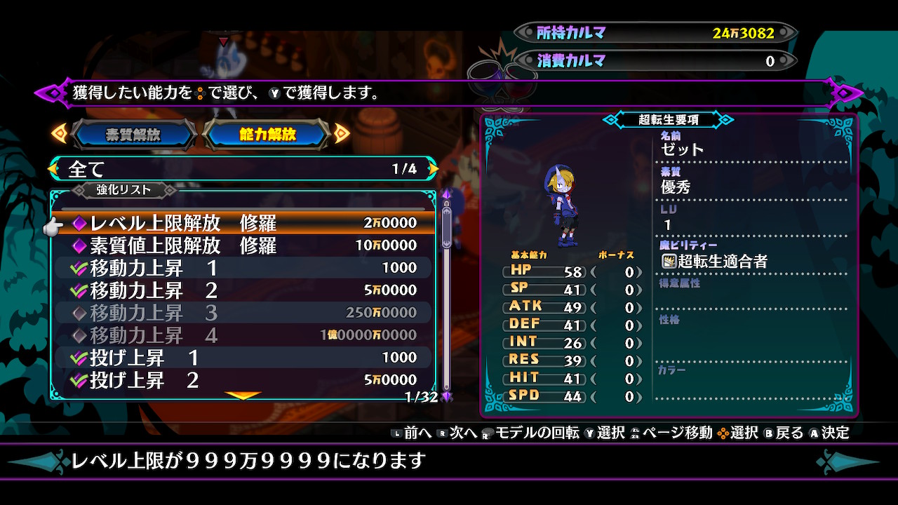 そのためには超転生でスキルを習得する必要があるので、再度LV1からやり直す必要があります