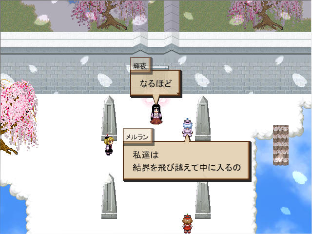 その後冥界の白玉楼という庭園に突入。中は広い階段が延々と続いており、途中にいるザコもかなり強い。しかし敵キャラのシンボルは階段の向きの水平方向を往復してるだけなので、タイミングをつかめばノーエンカウントで進めた。