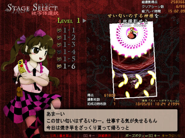 このシーンをクリアすることで、ZUN氏からのありがたいコメントともに、はたてが自機としていつでも使用可能になるのです!!