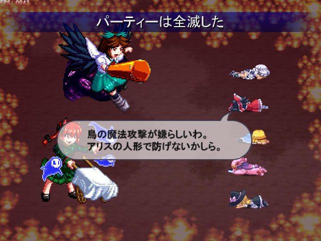お空は速さが高いので、メガフレアを使われる前に撃破するため文のコマンダースペルによって先手を打つことにした