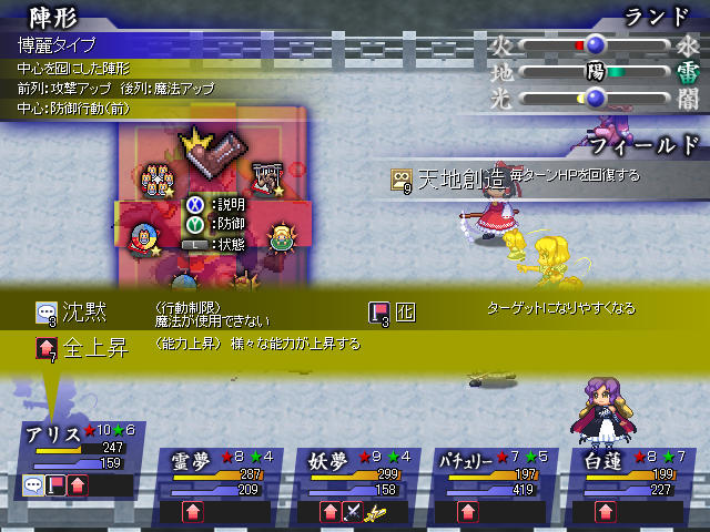 衣久の時と同様、最初のターンは地属性の攻撃を予想して霊夢の四方白虎陣を発動