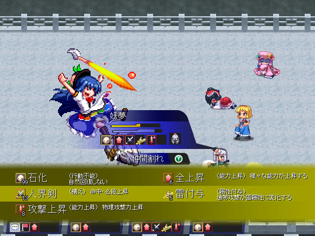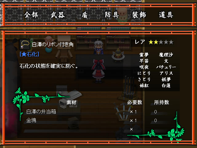 石化状態は霊夢の軽度治療では回復できないので、石化を防ぐアクセサリーか、さらに高度な回復手段を用意する必要があるな