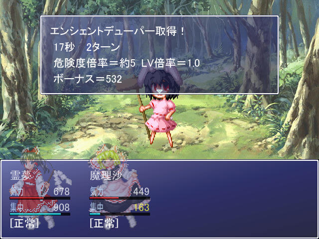 システム面だけでなく、霊夢や魔理沙といったキャラクター同士の会話のテキスト量が非常に多く、作者の作文能力の高さを感じることが出来ました