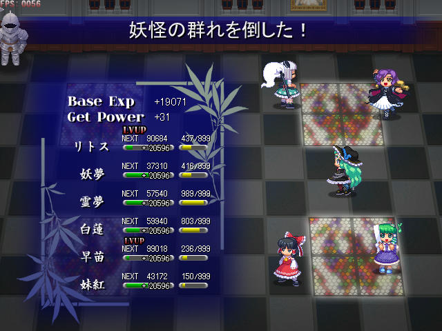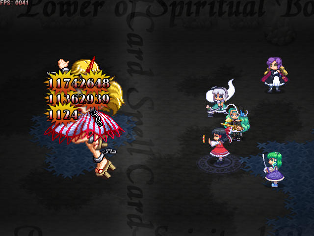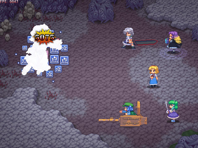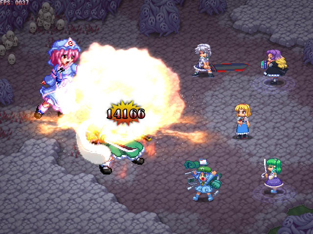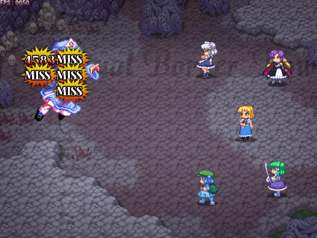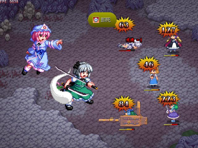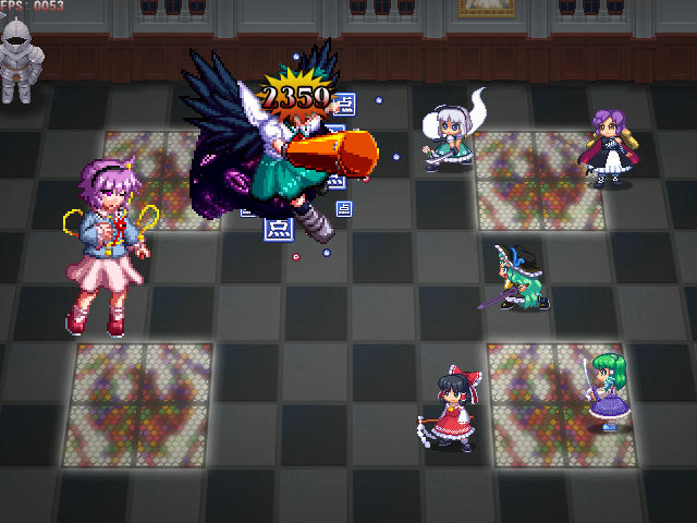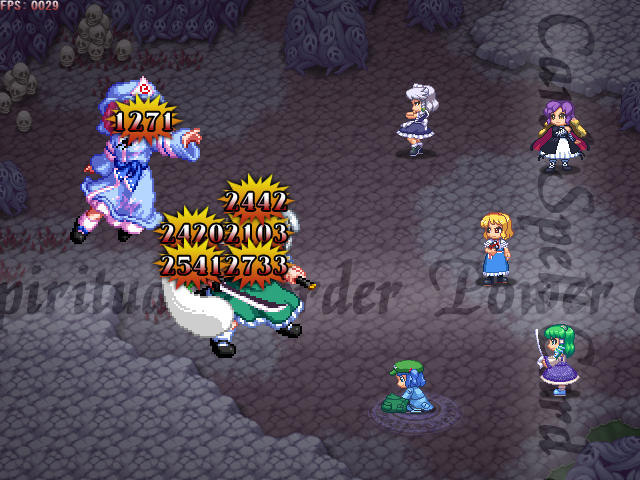 幽々子は回避が非常に高く、咲夜だと直撃のゴーグルⅣをつけてもほとんど攻撃があたらないにとりのスピットファイアや属性付きのスペカなら命中補正で安定してダメージを与えられる