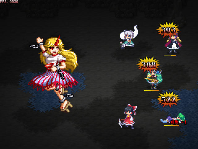 補助付きの咲夜で攻撃するとこんな感じ 妖夢は戦士なので強打が入る
