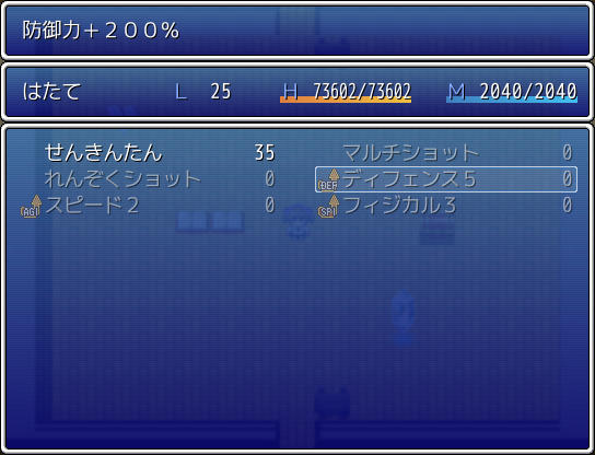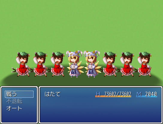 オート戦闘だと頭の悪い行動をしてすぐに死んでしまうんじゃないかという心配がありますが、はたてが戦闘で使用する技は全て消費MPが0なのでMP切れはしないし、威力も通常攻撃と大差ないので、オートで通常攻撃しか使ってくれなくてもさほど問題ありません