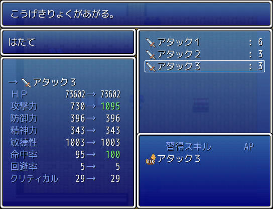 そして前作と同様、Lキーを押せば戦闘が超高速化し、戦闘後のメニュー画面が開けるインターバルさえもスキップされます