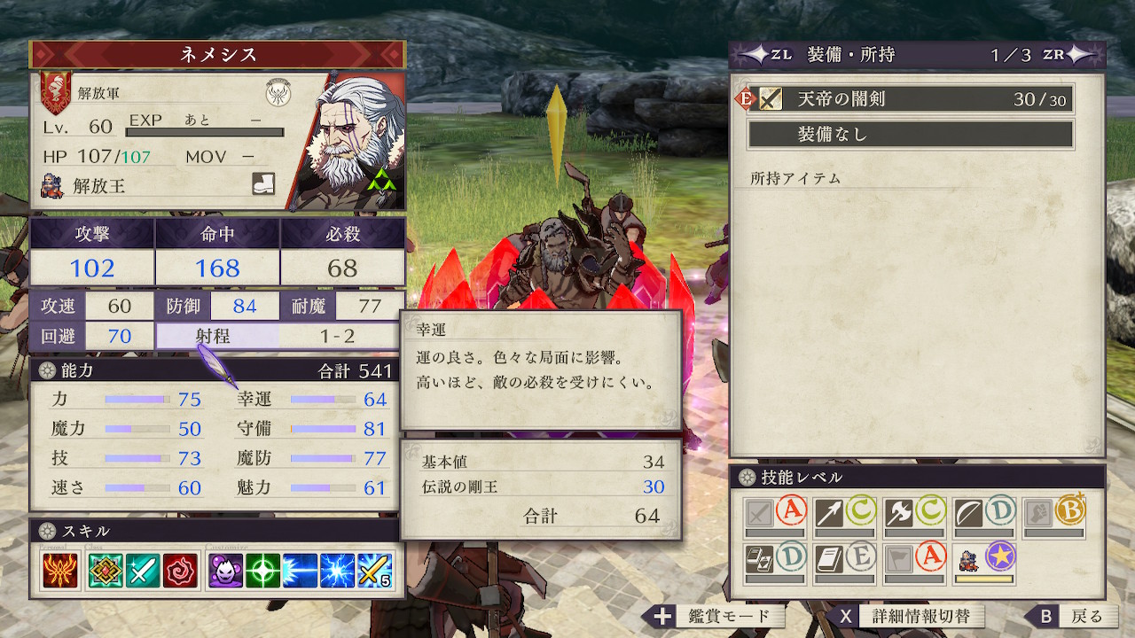ノーマルでは兵種スキルをマスターする前に規定LVまで上がるため、マスターするには最新の兵種ではない下位職で戦い続けないといけなかったが、ルナティックでは後戻りせず順番に兵種スキルをマスターしていけそう