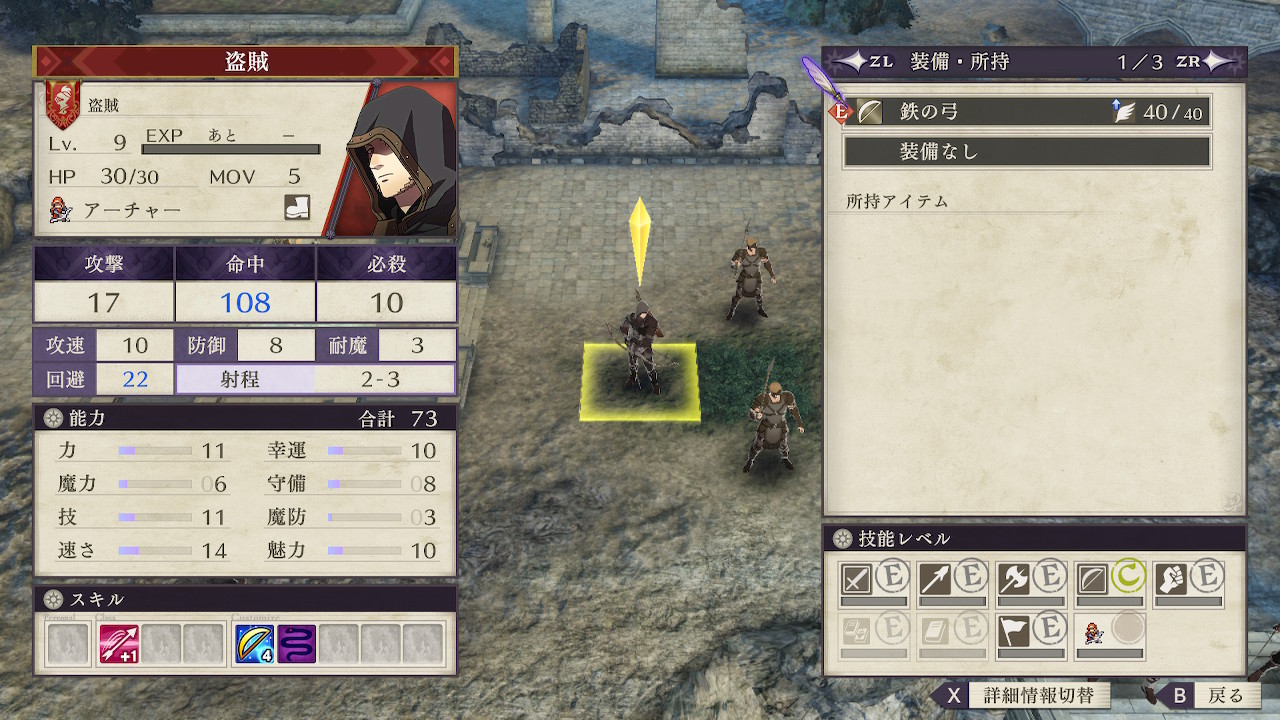 また攻速を確保するのが難しい序盤では半数以上のユニットが一番軽い武器を装備してもアーチャーから追撃されてしまうので、囮役で引き付けた後は速攻で撃破したい