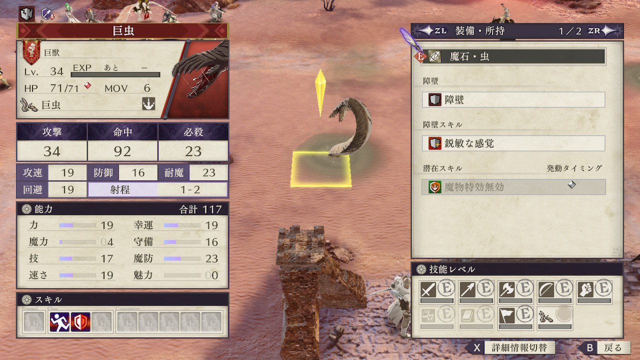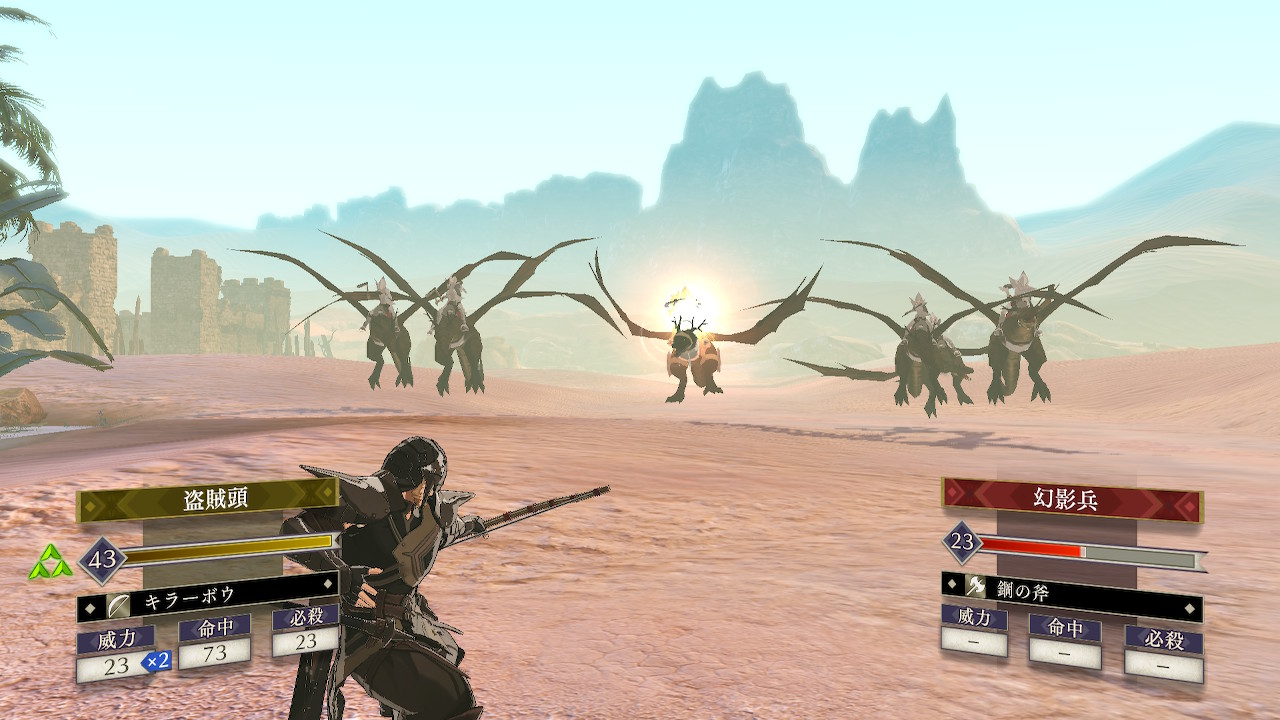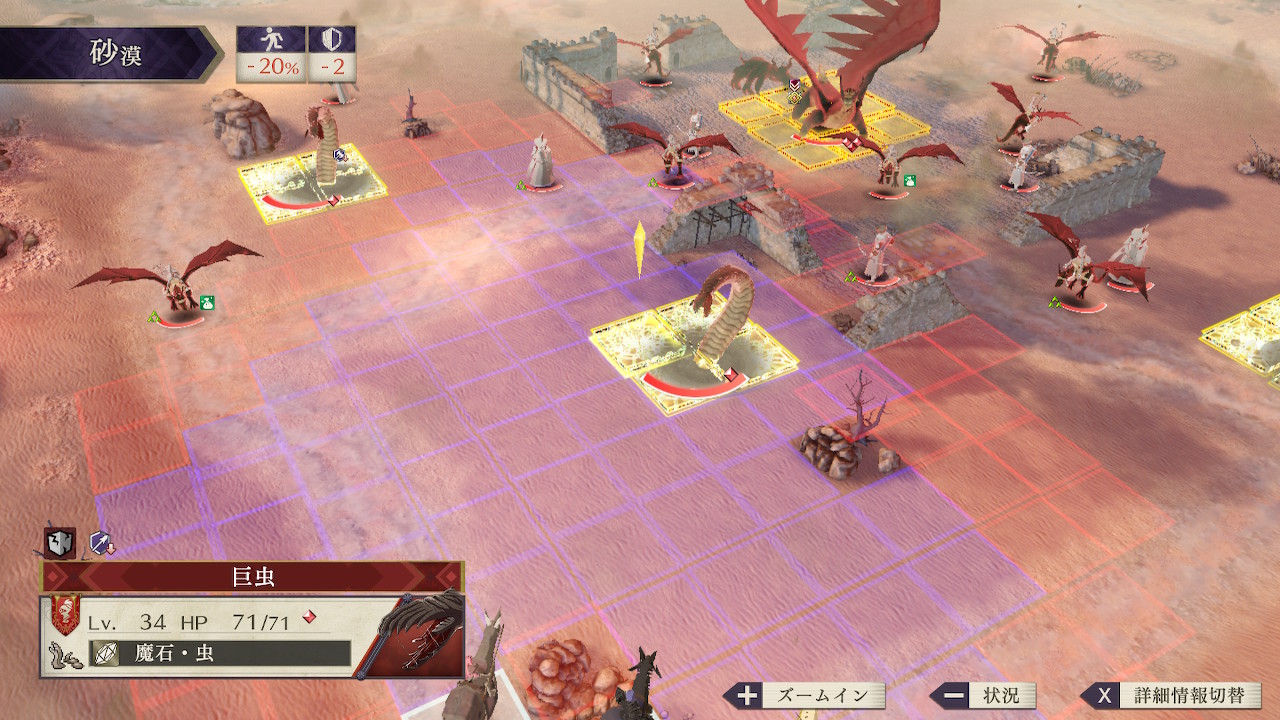ザコ敵の数はあまり多くないものの、新種の魔物の虫をはじめ、飛行系や魔法系など砂漠の移動コストを無視できる敵が大半を占めており、砂漠で動きが鈍るこちらが不利な状況になりがち