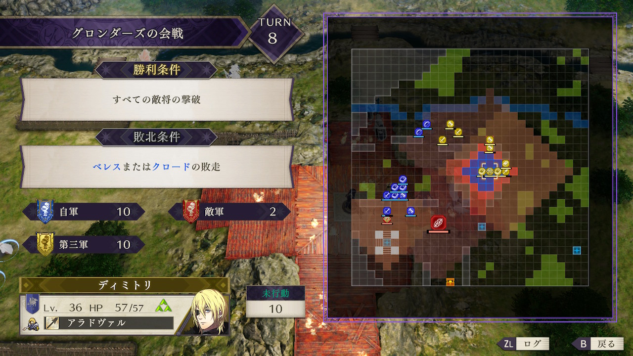 帝国軍を全滅させたら向かってくる王国軍を迎撃するわけだが、ディミトリは相手が誰であっても戦技の無惨を使ってくるという殺意増し増しで襲ってくるのでエネミーフェイズに反撃でダメージを与えようなどとは考えないこと