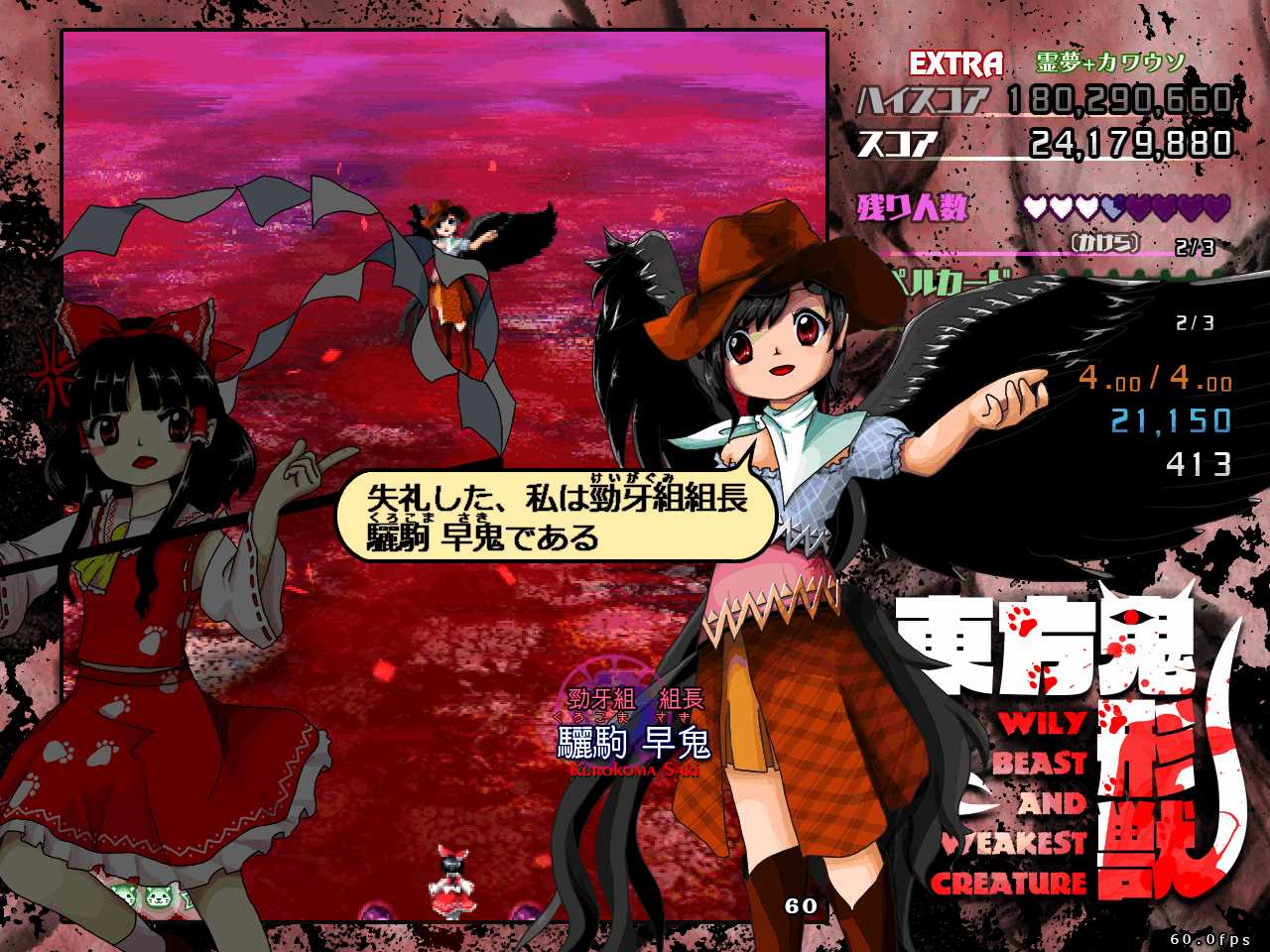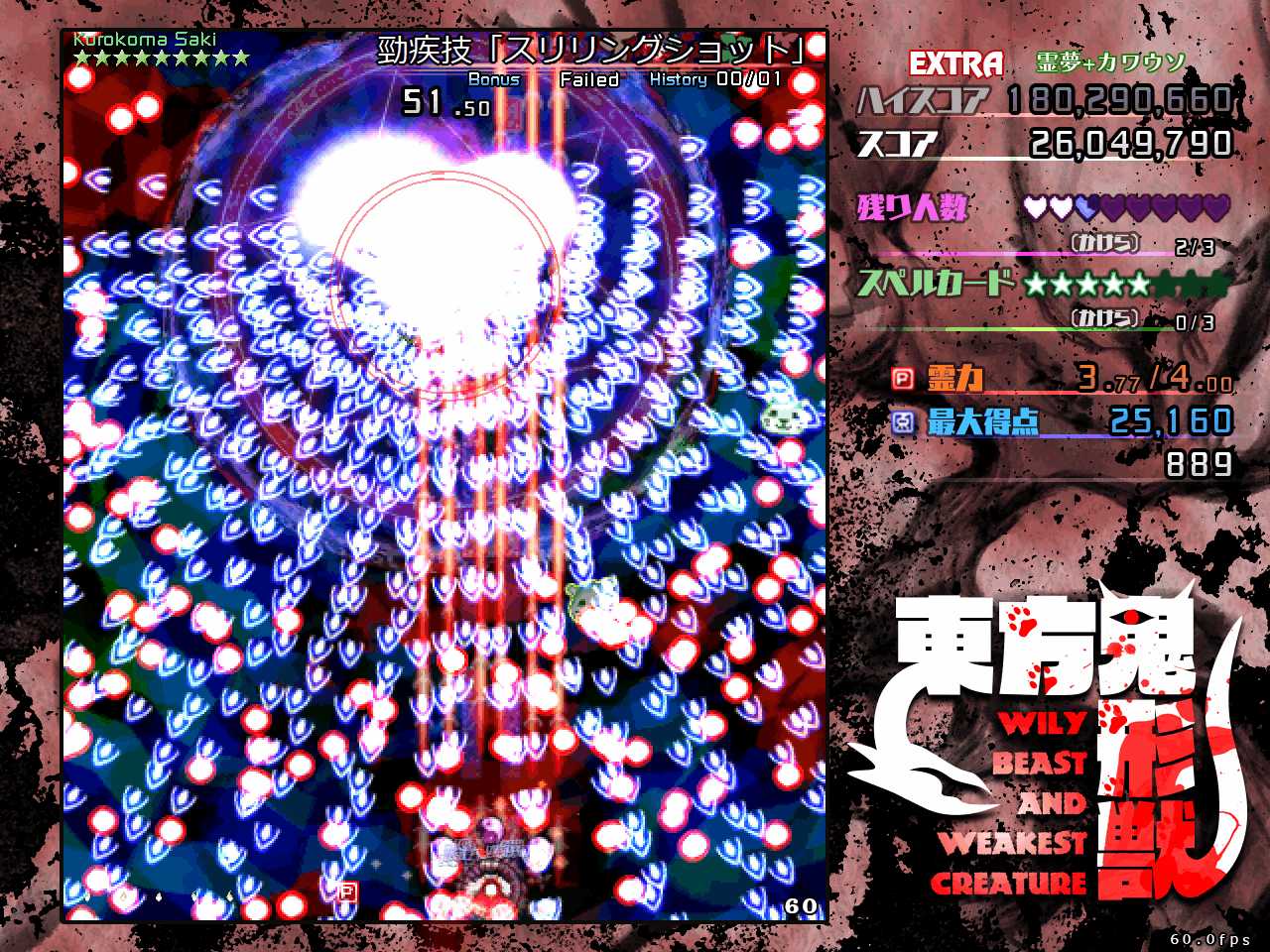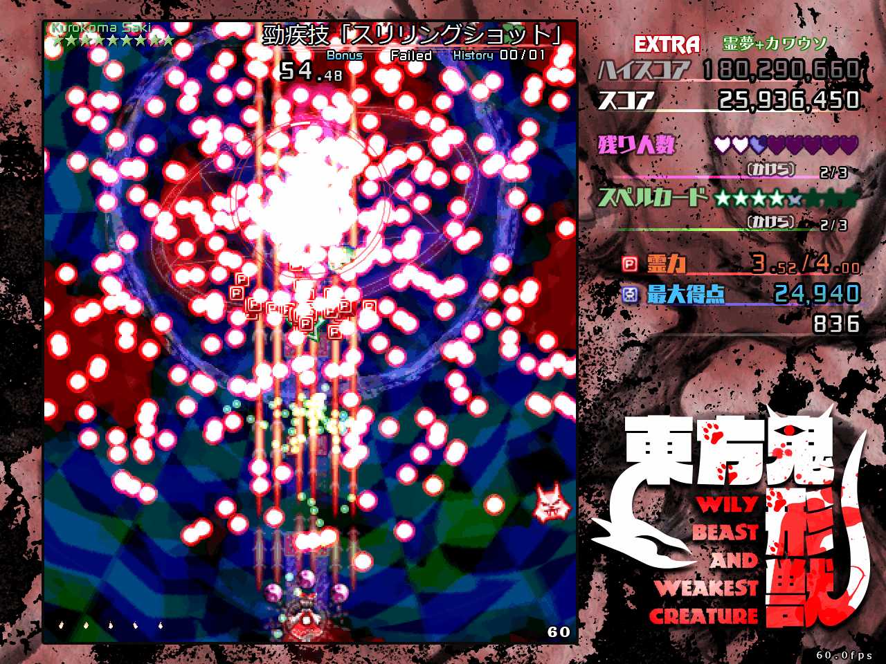 特に初見だと次にどんな弾幕が来るのかわからないので、動物霊を回収するため前に出たらその瞬間やられるということも多発