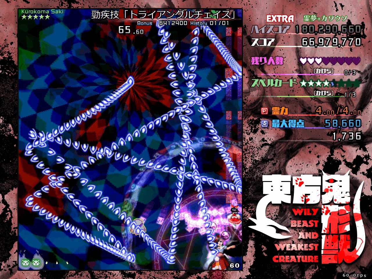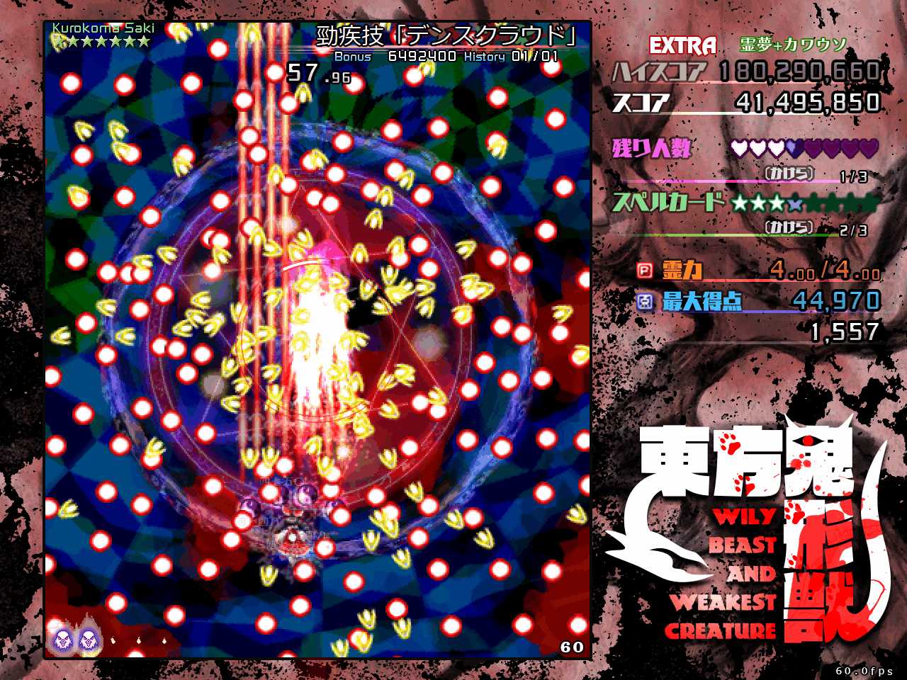 今回のEXは歴代シリーズでもかなり簡単な部類に入り、本編ハードをノーコンクリアできる玄人なら初見でクリアできる…くらいな感じです