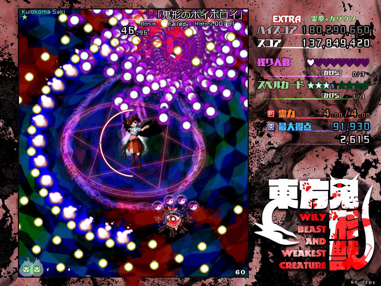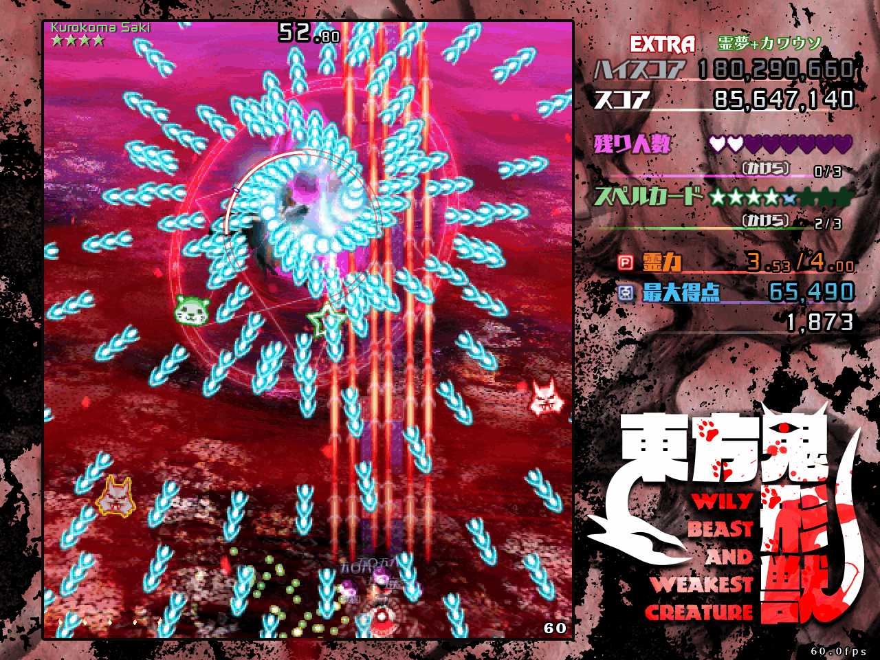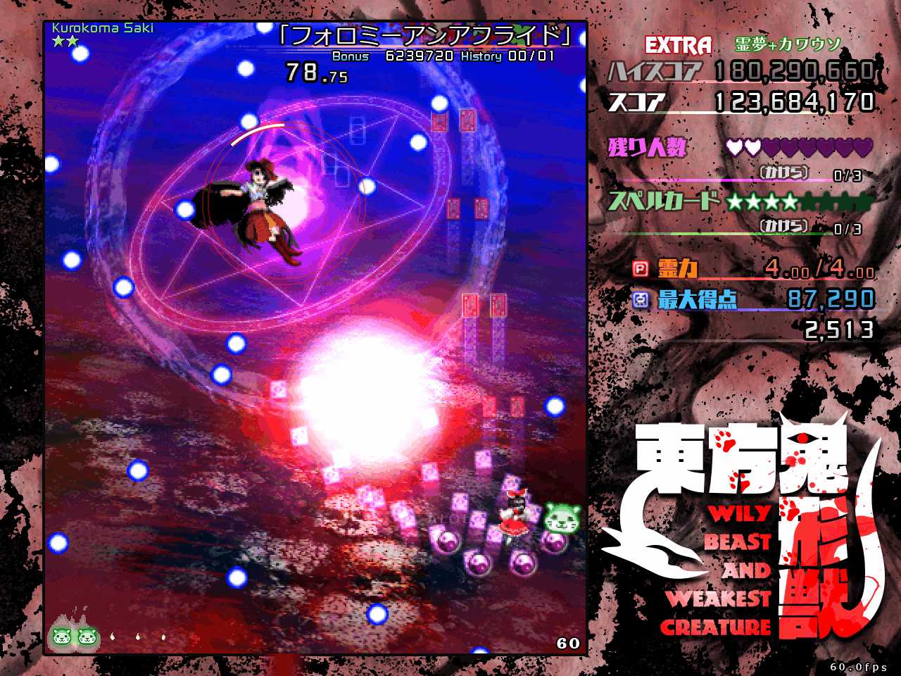 なので本番中は動物霊を回収したいという雑念は捨てて弾避けに集中し、回収するなら通常攻撃時にボムって強引に回収するくらい気持ちを割り切るのが重要です