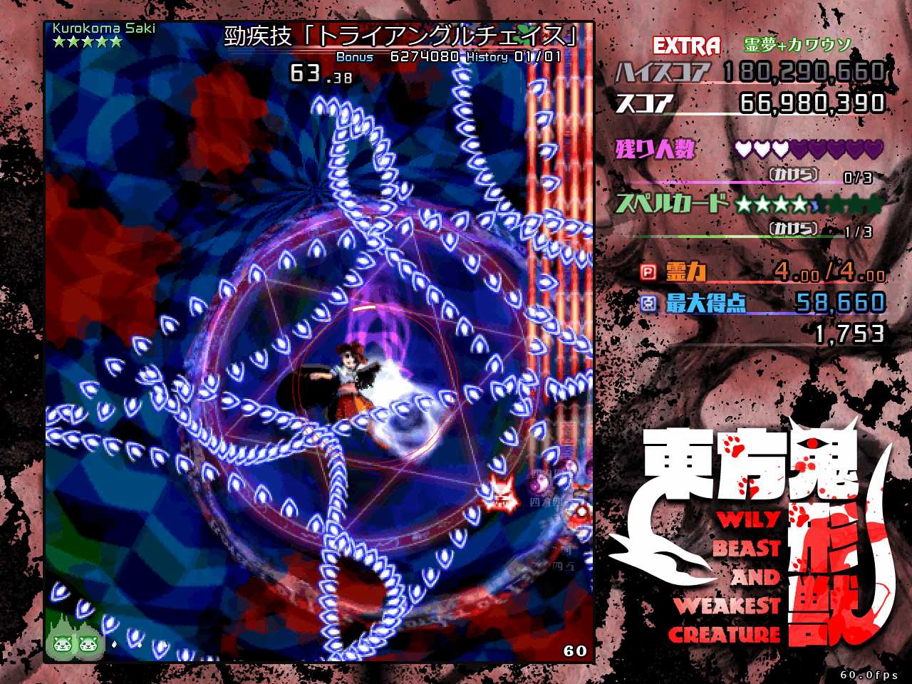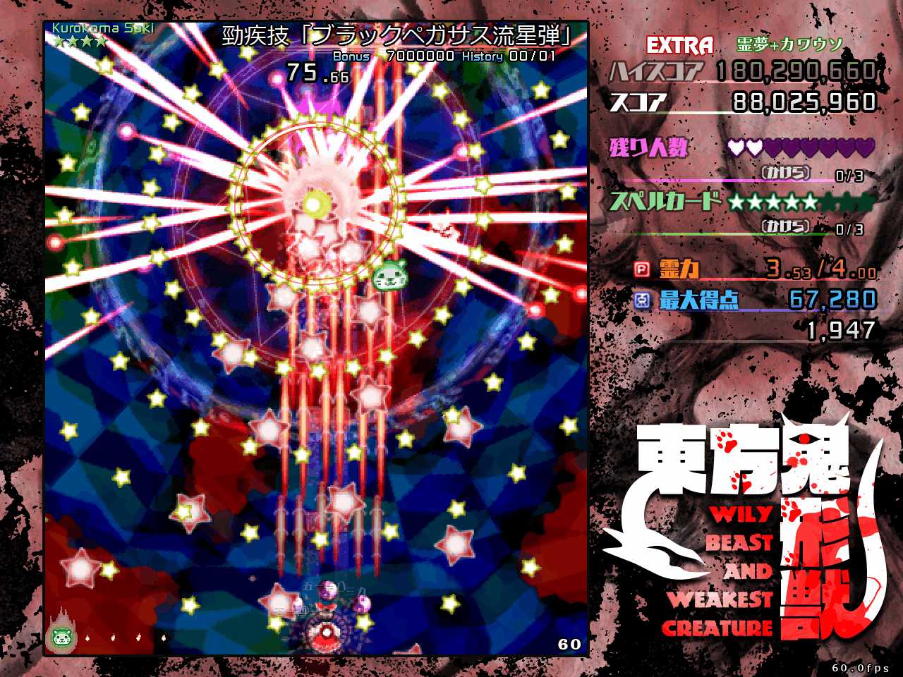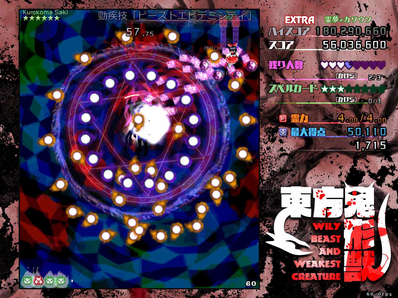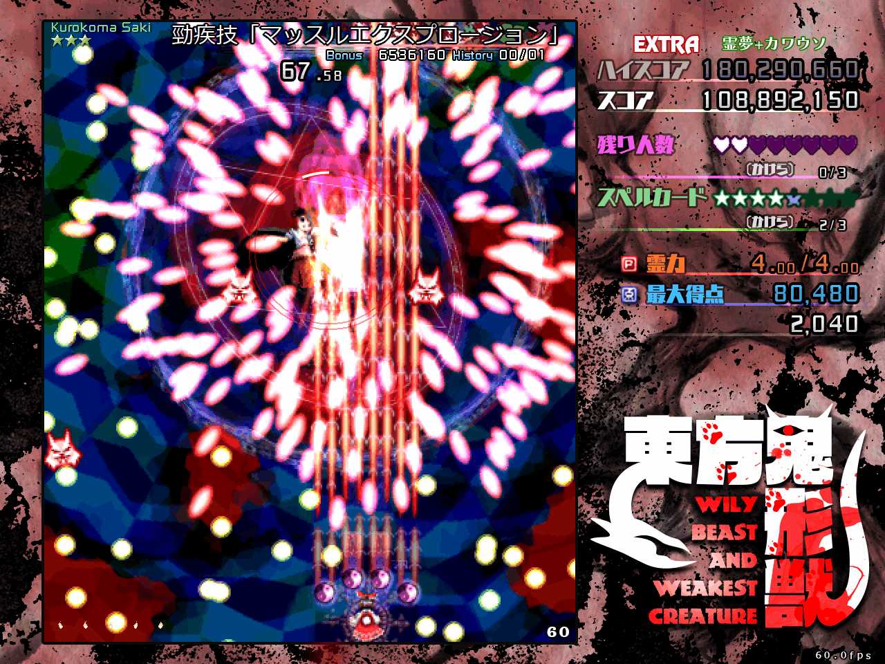 なので本番中は動物霊を回収したいという雑念は捨てて弾避けに集中し、回収するなら通常攻撃時にボムって強引に回収するくらい気持ちを割り切るのが重要です