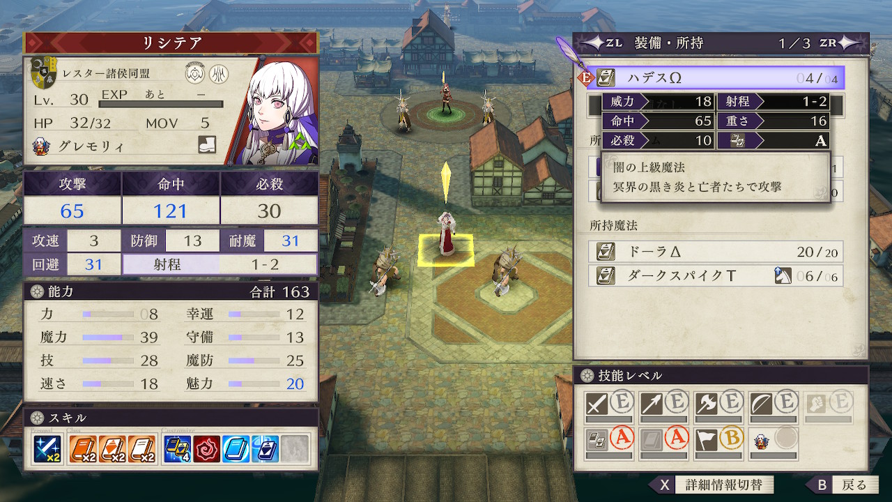 リシテアは英雄の遺産ではないものの、最強クラスの闇魔法を装備するグレモリィで攻撃は65!!