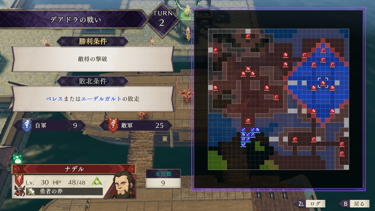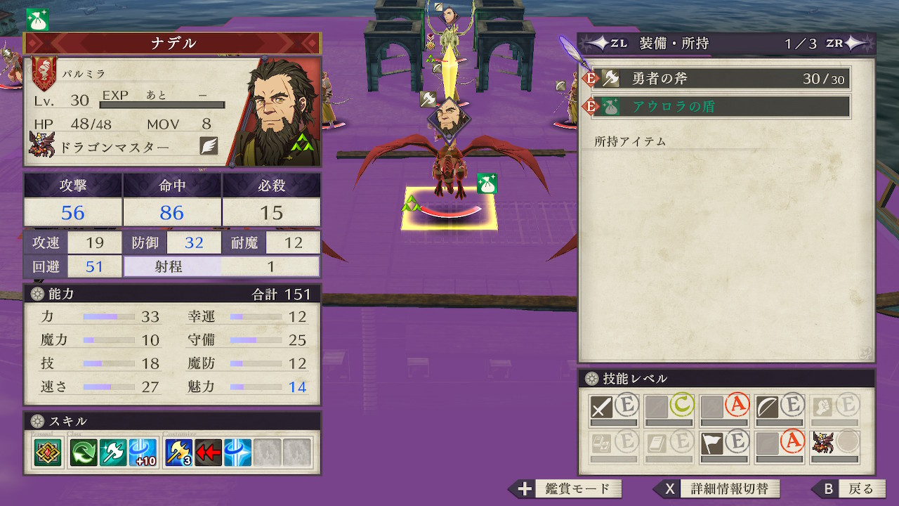 ナデルは勇者の斧を持ちその攻撃は56で、最大の防御を誇るエーデルガルトでさえ対策なしでは耐えられずに即死する可能性があるため、囮役を配置しておびき寄せる方法は使えない
