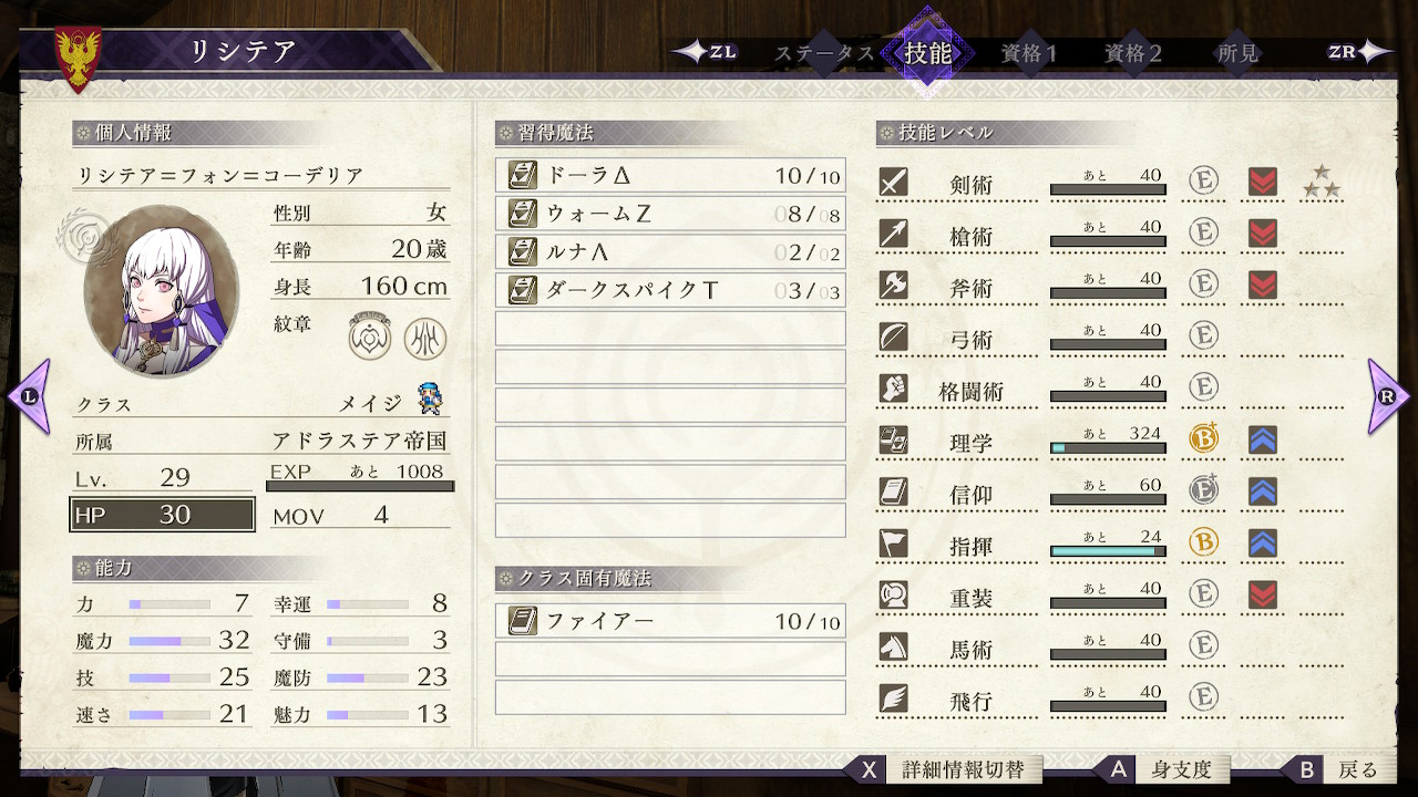 FEシリーズはクラスチェンジ後を含めてLV40までっていうジンクスがあったから、もしこれがLV40を超えてLV50まで上がってくれたら凄い嬉しいんだけどなあ