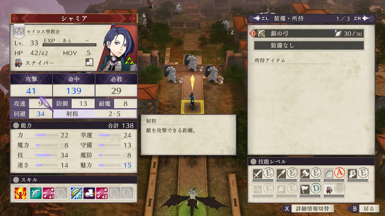 弓は距離が遠くなるほど命中が下がるという特徴がありますが、高い技と命中精度でカバーできます