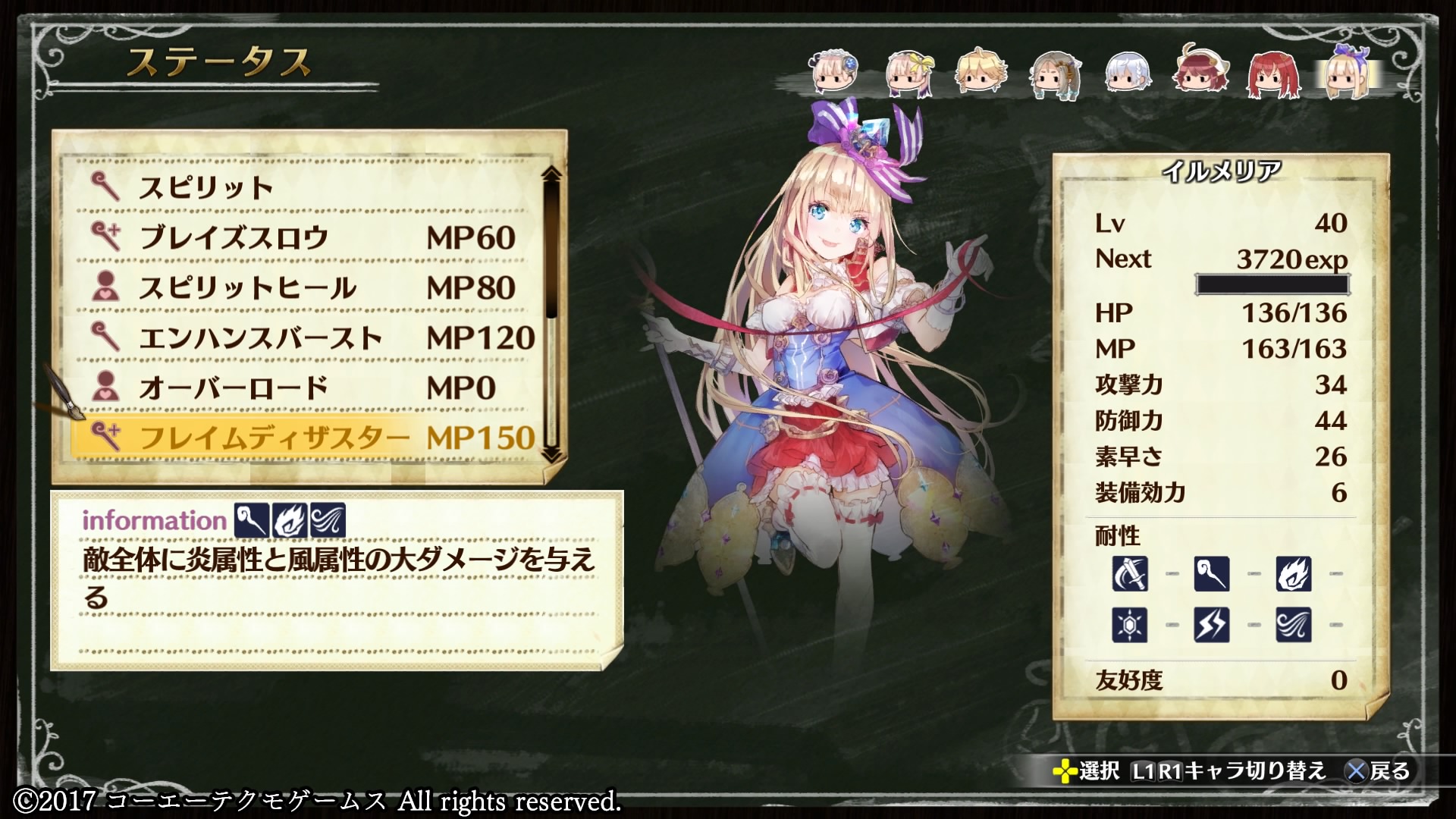 戦場で戦ったときはクラスがグレモリィで魔力は39、技能レベルもAという強キャラだったんですが、仲間になると中級クラスのメイジになり、そのときの強さは鳴りを潜めてました