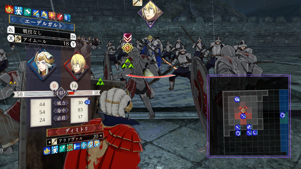 まあ、実際はというと今作の自軍ユニットも相当強いので前衛ユニットなら即死はしないだろうけど、クロードと違いこの2人は自分から移動してくるので、攻撃範囲には最大限の警戒をしなければならない