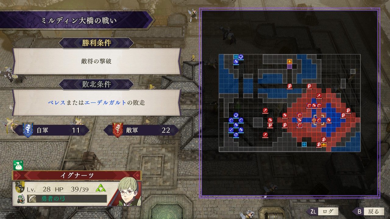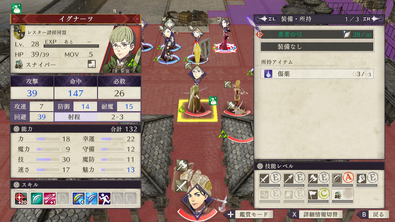 特にイグナーツは射程が3で攻撃、命中、必殺の全てが高く、しかも勇者の弓で2回攻撃してくるためエーデルガルトなど守備の高い壁役でも安全に受けきることはできない